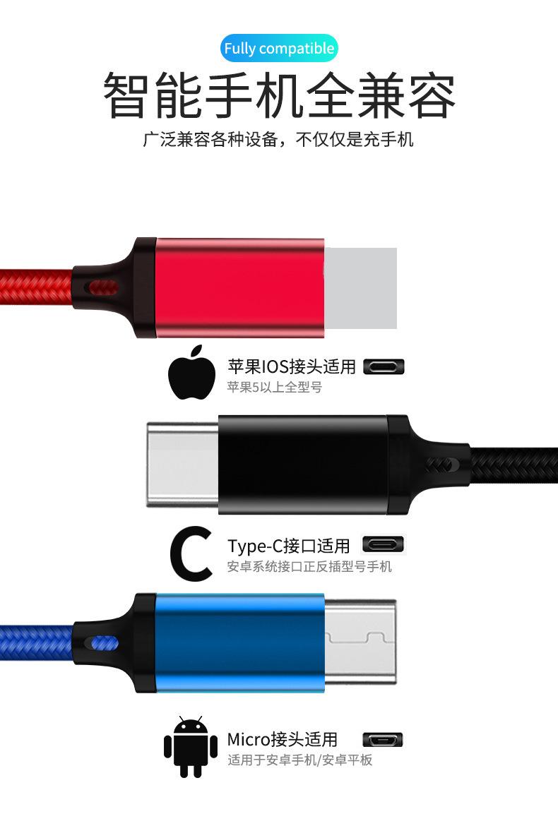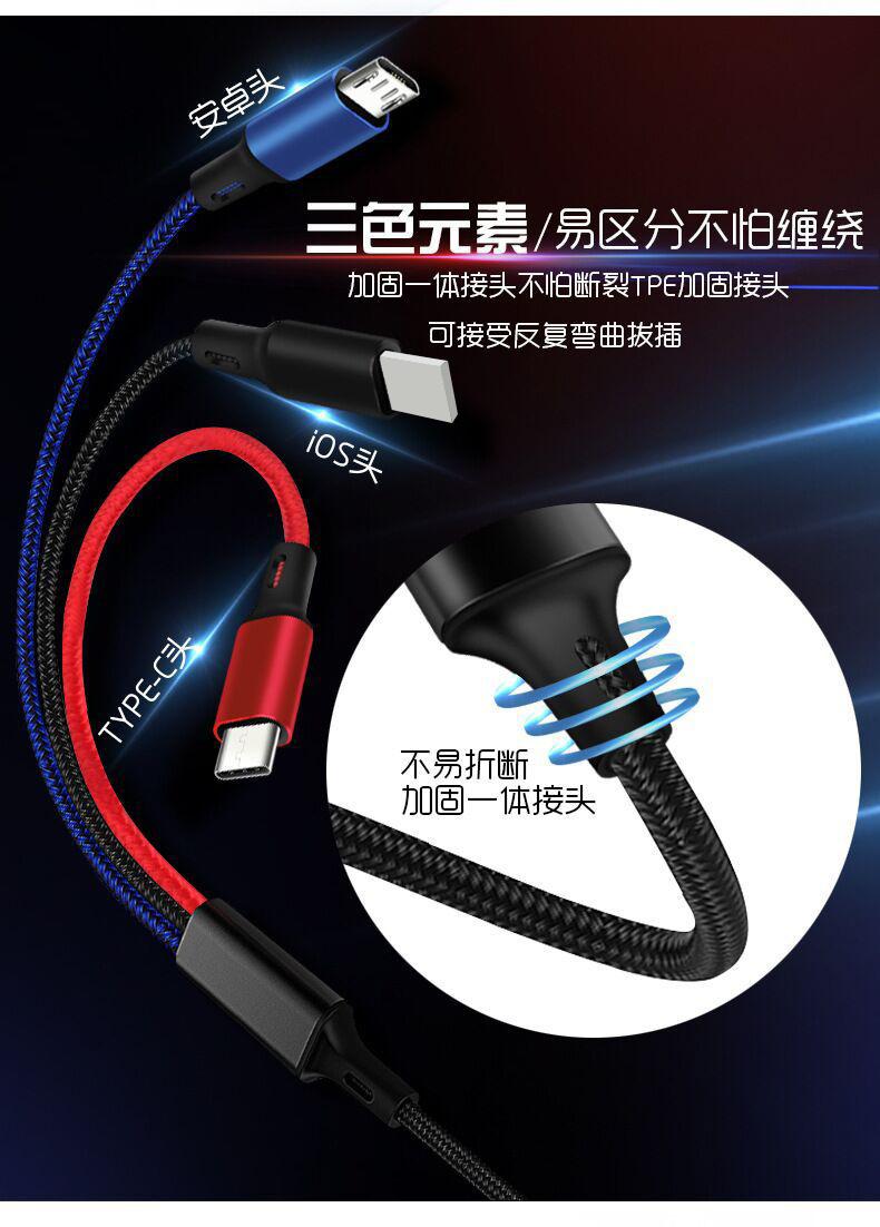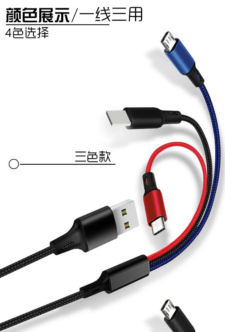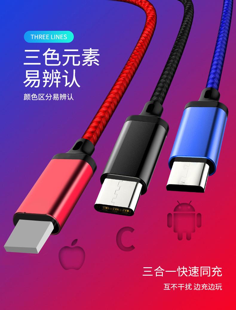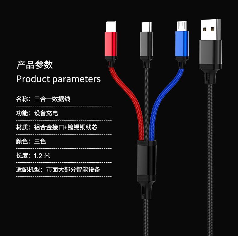 [Nombre del producto] Cable de carga trenzado de tres colores de uno a tres