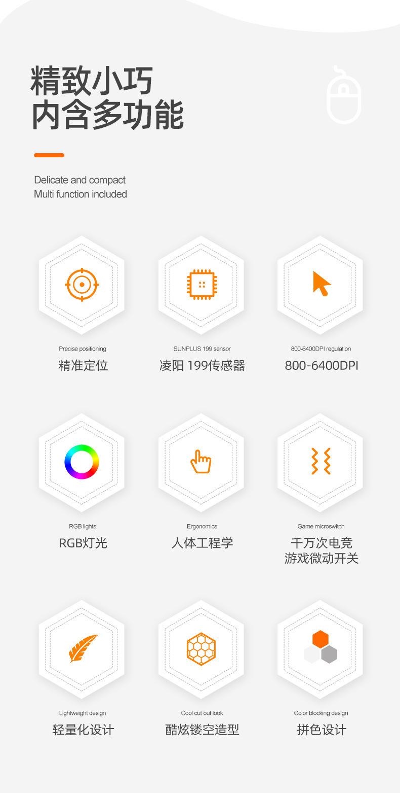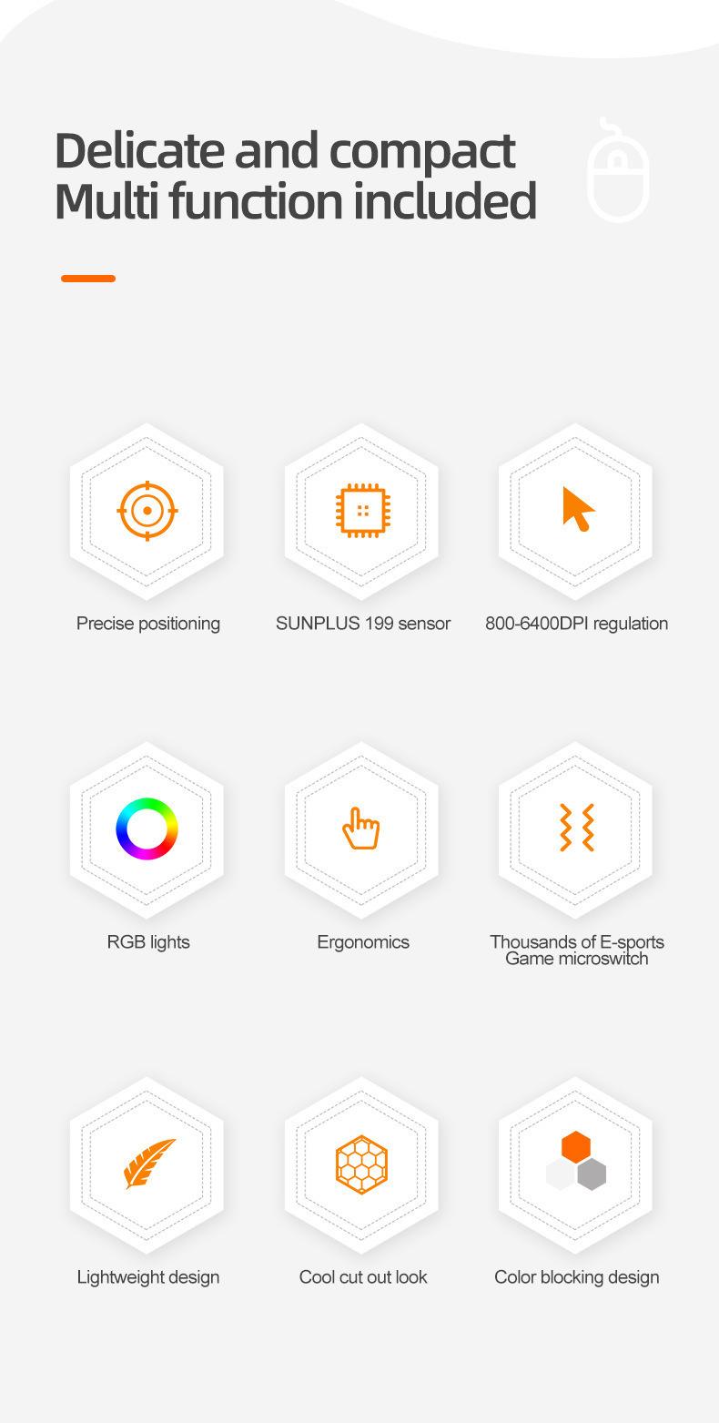 DPI:6400 DPI 6Ajuste de velocidade800-1600-2400-3200-4800-6400