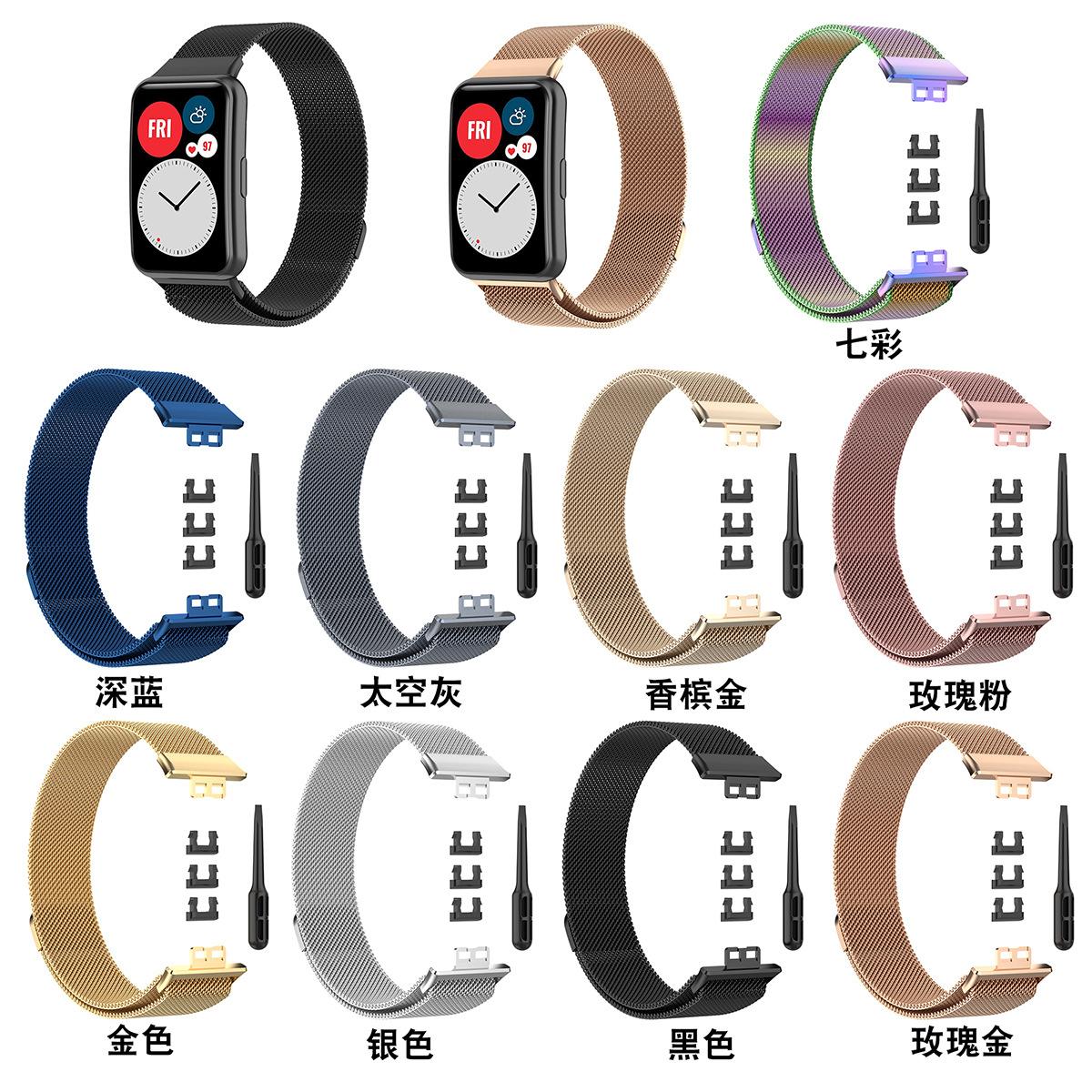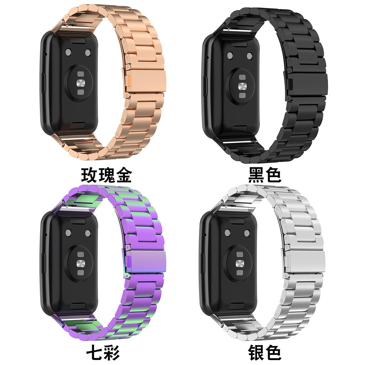 Adequado para Huawei Watch Fit Milanese pulseira de aço inoxidável com três contas TIA-B09 pulseira de nylon trançado