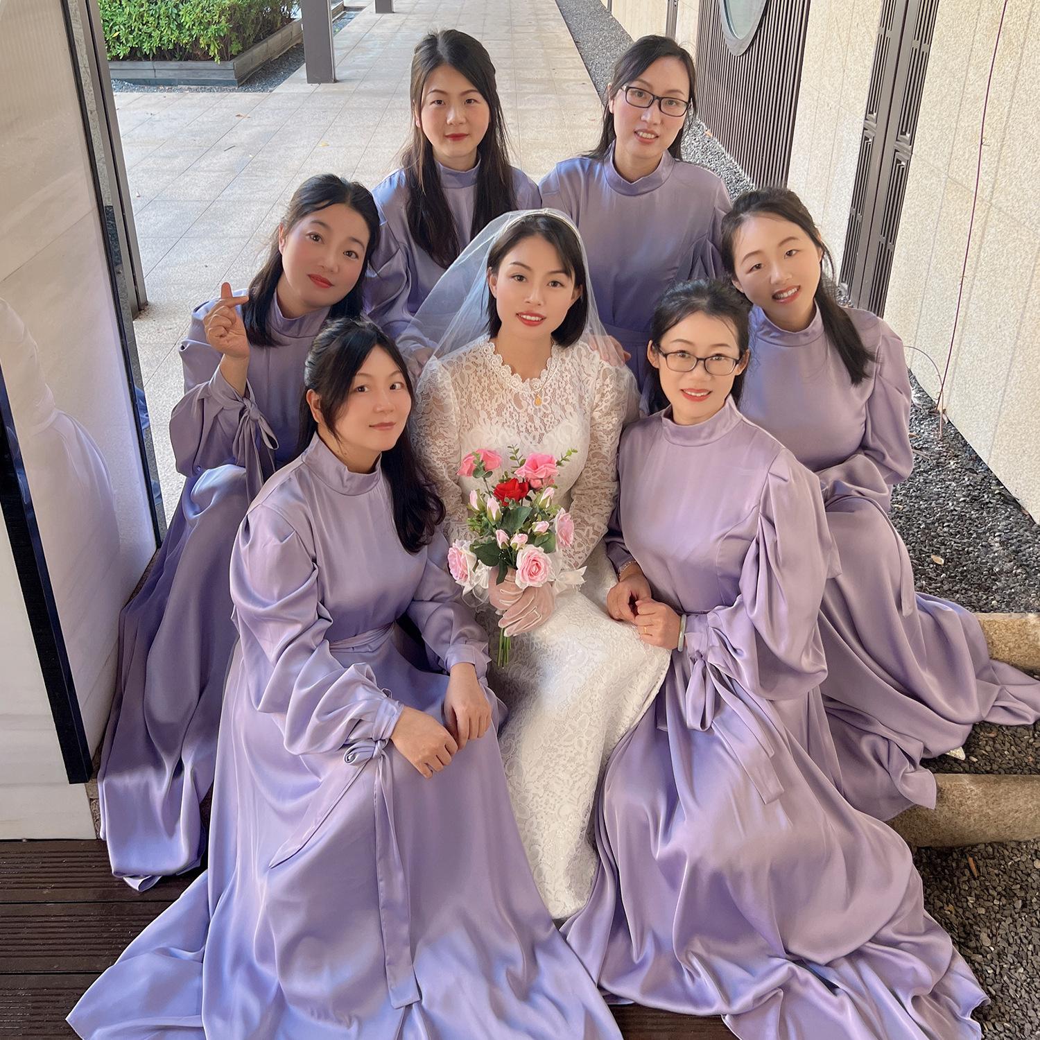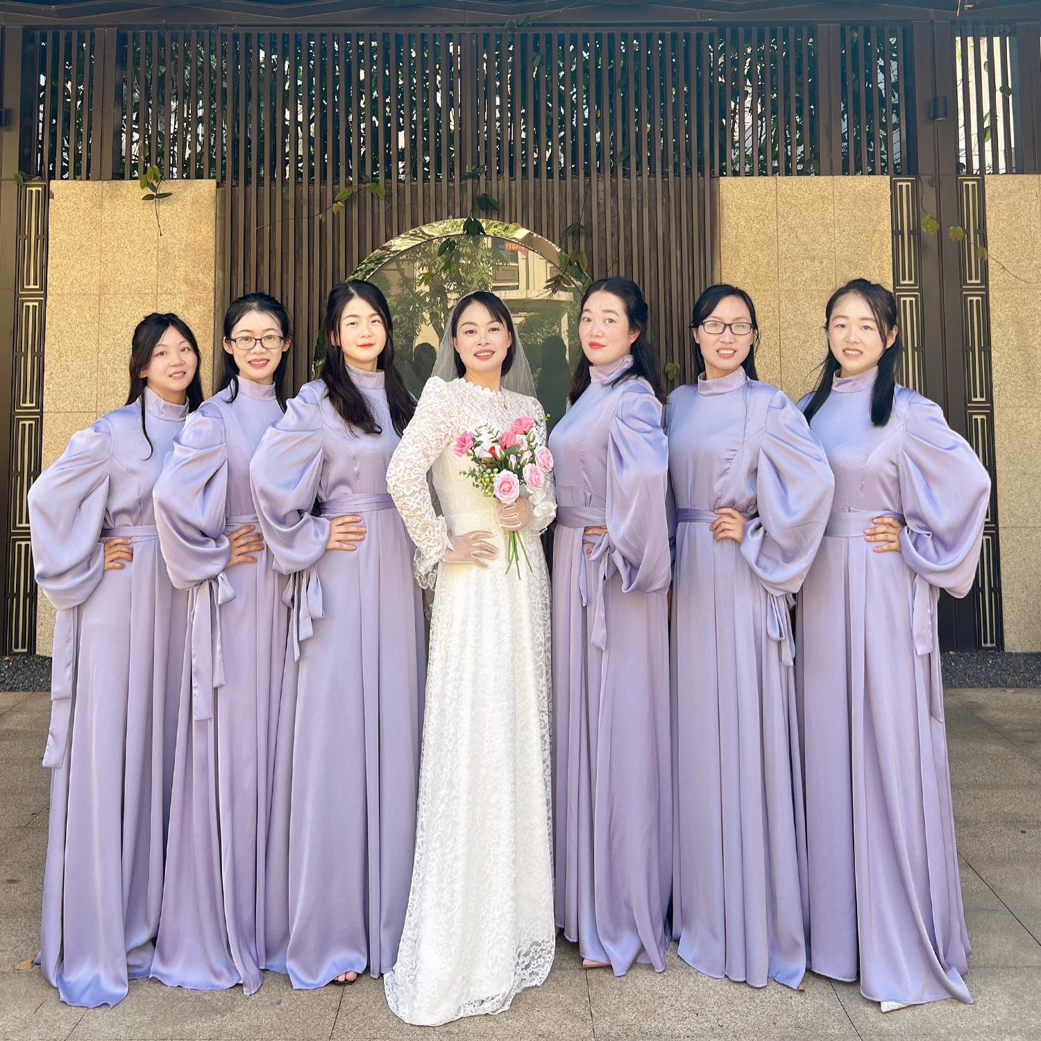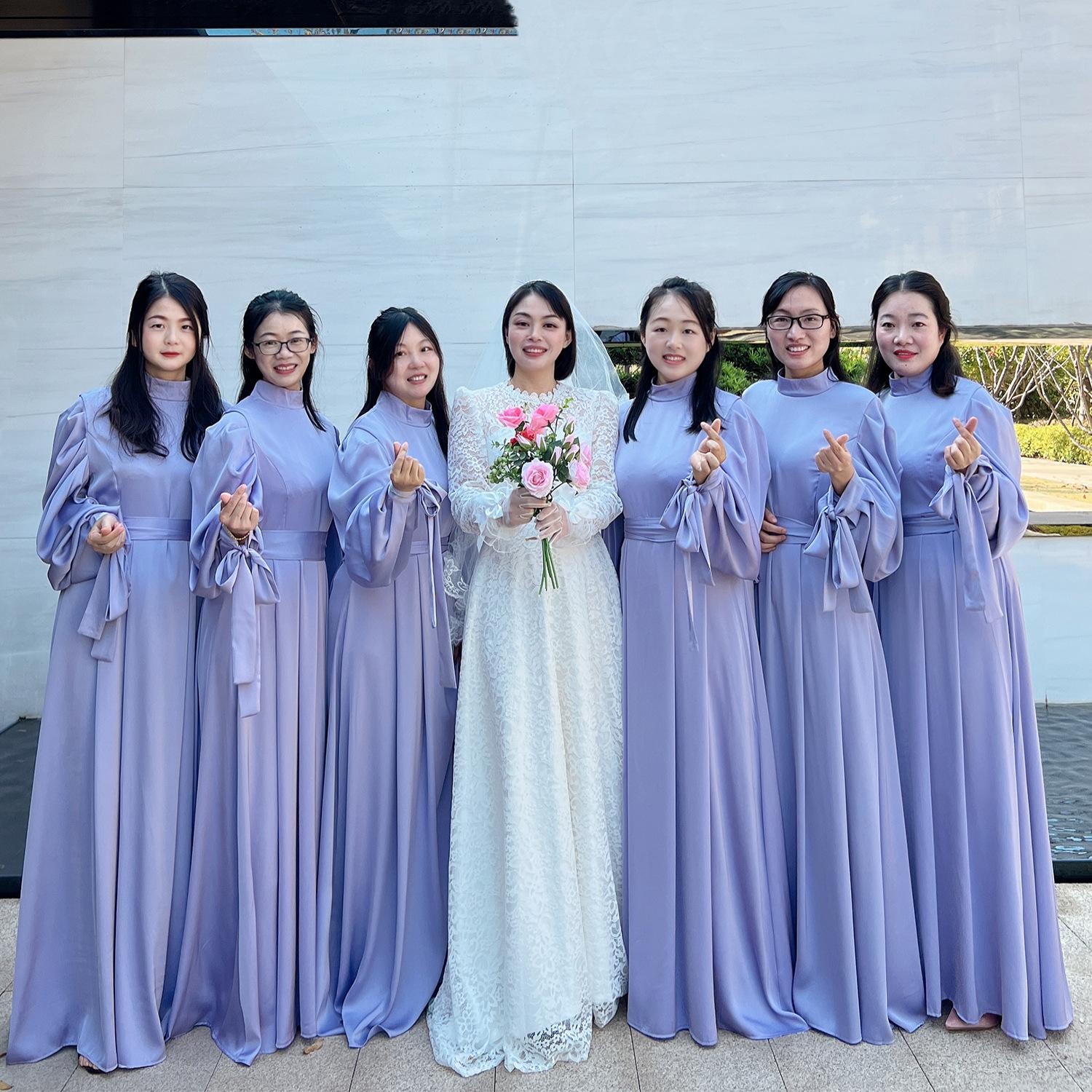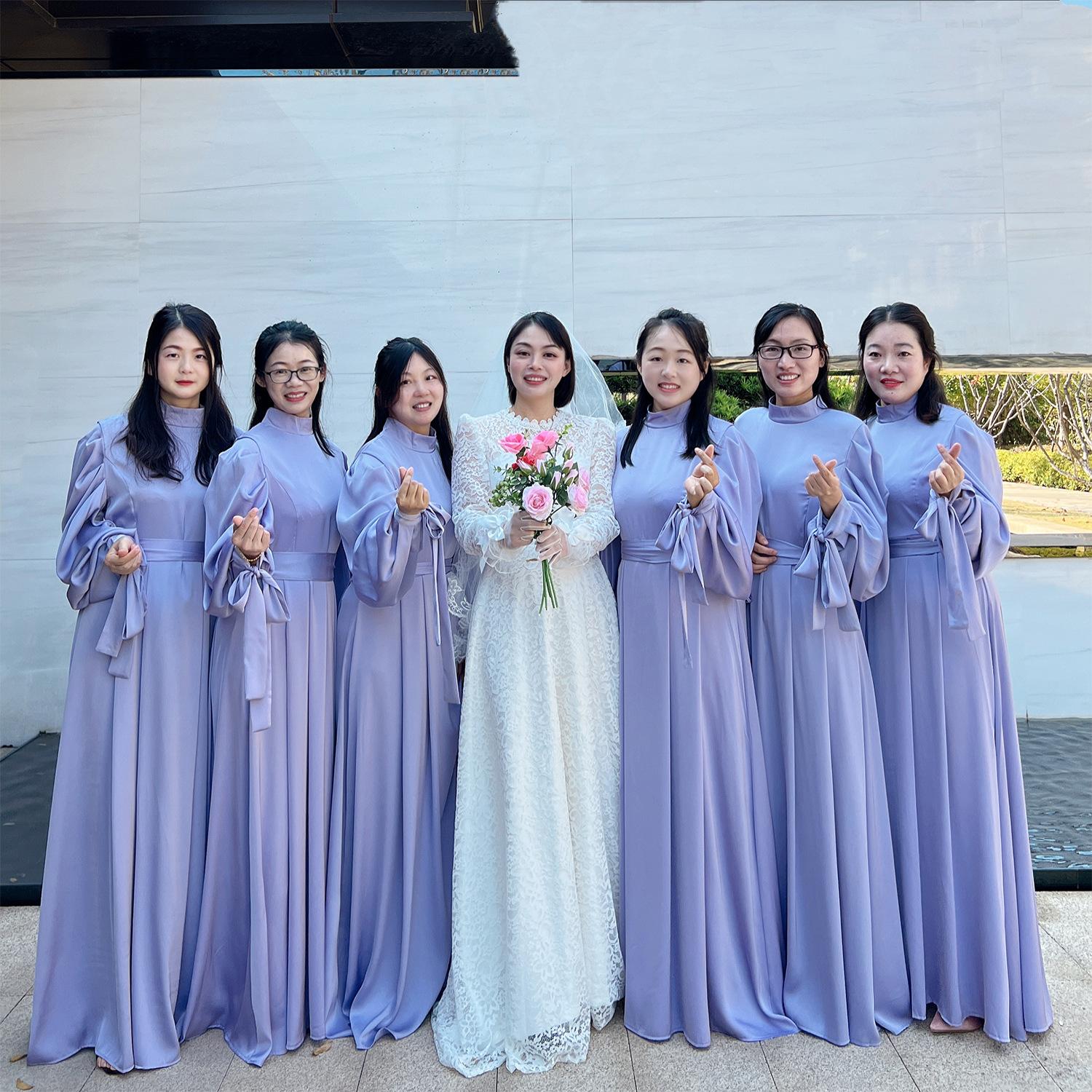Vestido de dama de honra de casamento Loriya 2023, saia longa de sardinha de alta densidade em cetim