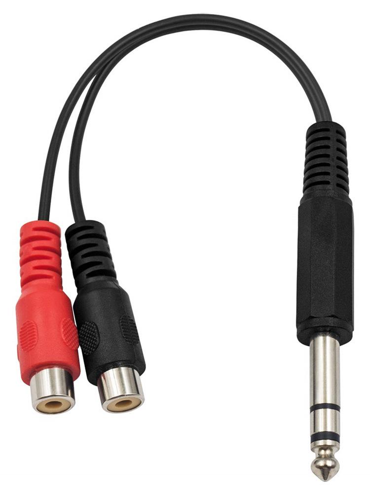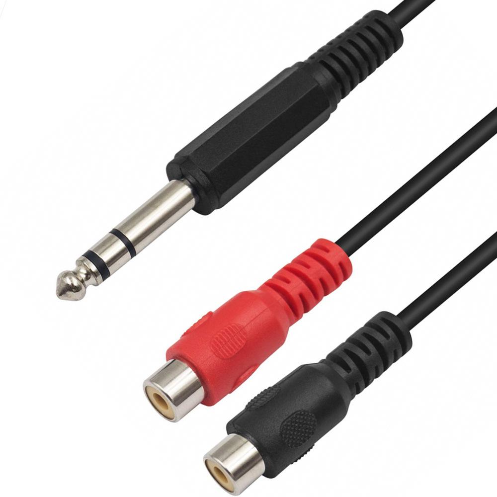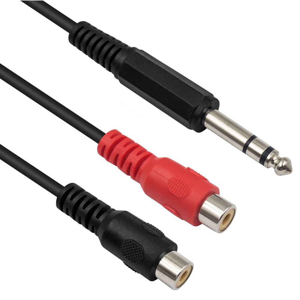 Conector Macho de 6.35mm a 2 Conectores Hembra RCA Fono Audio Estéreo Cable Divisor en Y 0.2m;