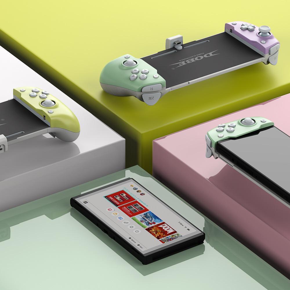 1. O console de jogo Switch é instalado diretamente na alça para aumentar a aderência do jogador.