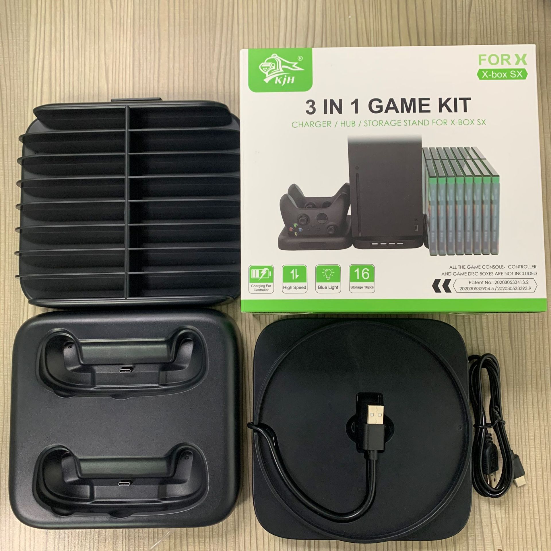 2. El set incluye 1 base Blu-ray para la consola, 1 cargador dual para el control y 1 estante para guardar cajas de discos de juegos.