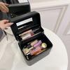 Pode armazenar tudo e definir uma nova elegância. Estojo de maquiagem de armazenamento de camada dupla, alça reforçada, espelho de maquiagem embutido, armazenamento de camada dupla, grande capacidade, a primeira camada pode armazenar batom, paleta de sombra, lápis de sobrancelha e outros itens pequenos, a parte inferior pode ser usada para armazenar essência, creme e outros produtos para a pele engarrafados. Uma caixa para tudo, viagem fácil, também pode ser facilmente colocada na mala, é a sua melhor parceira de viagem! Ajudá-lo a economizar 80% do espaço em sua área de trabalho, pode colocar uma garrafa grande de 230ML SK-II horizontalmente!
