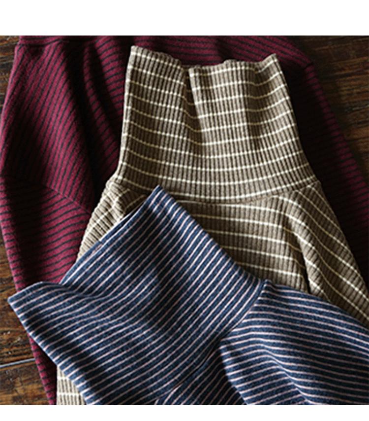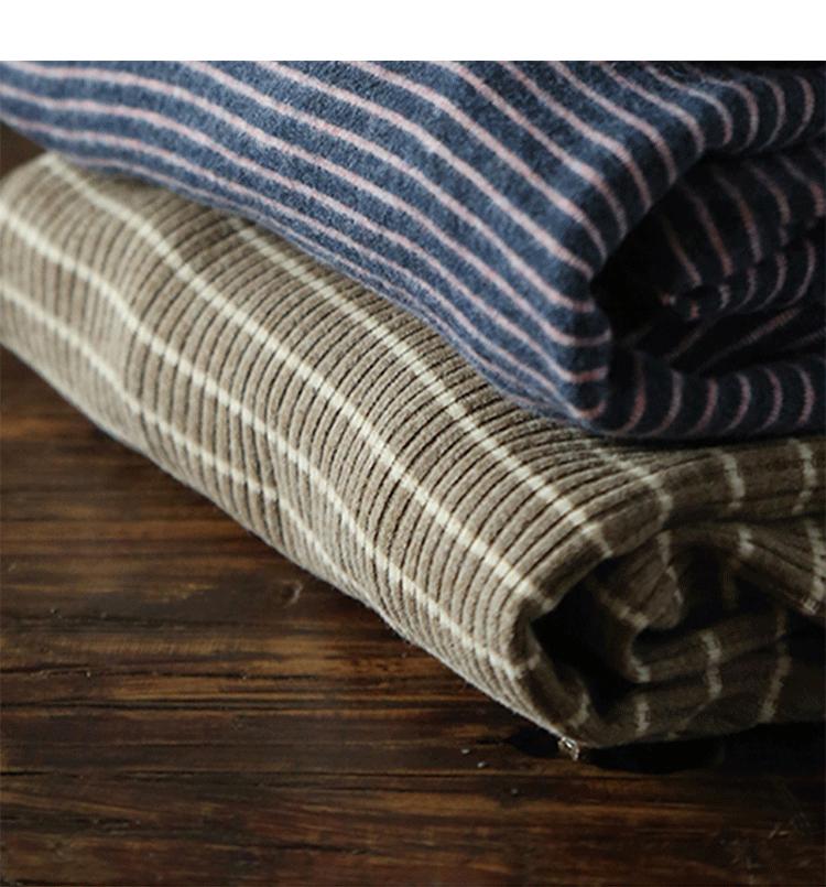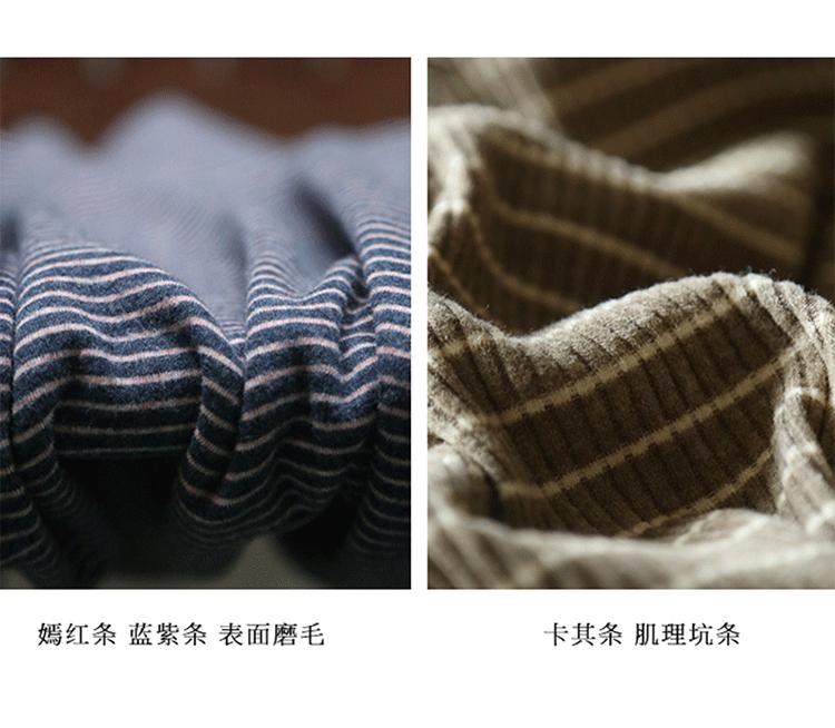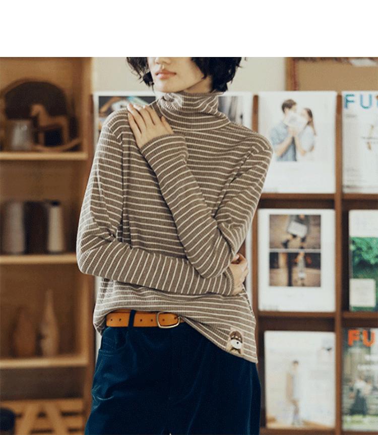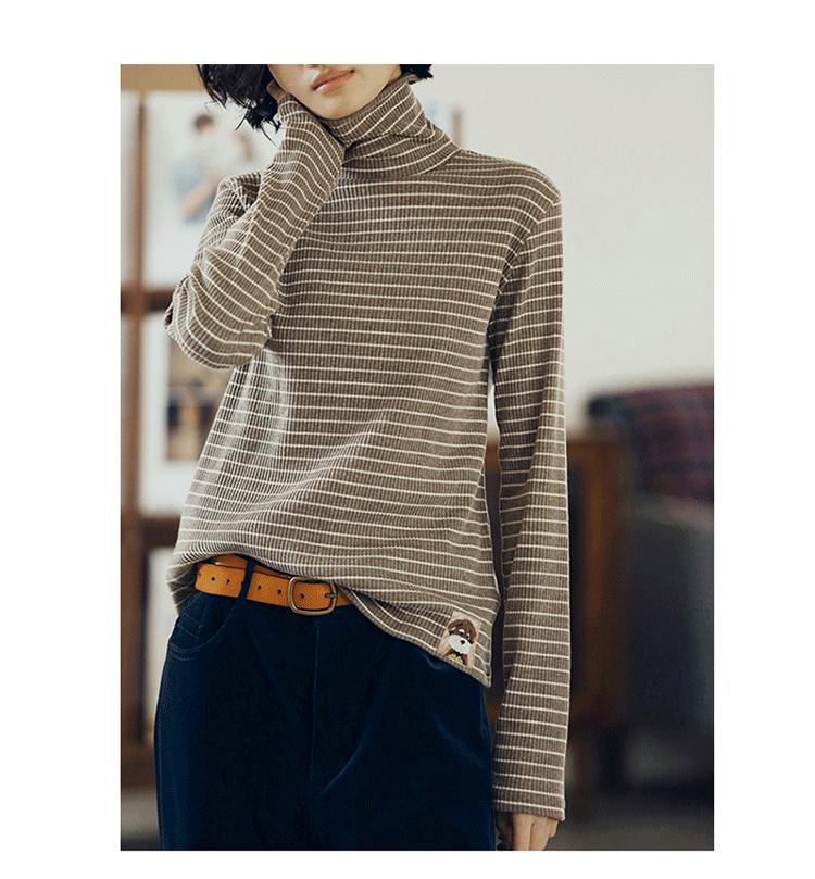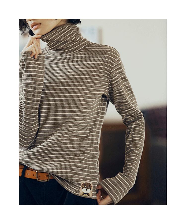 ![]() Camiseta Feminina Macia de Alta Elasticidade Listrada Solta Manga Cinco Botão Falso Top Gola Semi-Alta Camiseta Básica Outono e Inverno Nova