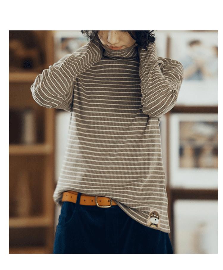 ![]() Novo Moletom Solto Literário de Gola Pequena Bicolor Casual Feminino Top 2025 Camisola Tricotada Listrada Feminina Camada Base
