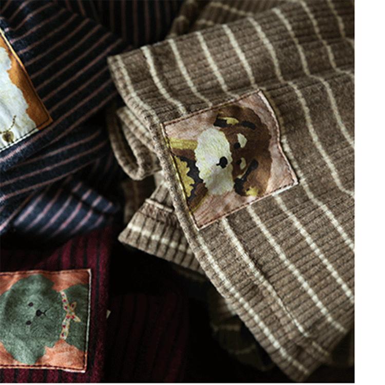![]() Primavera e Outono Novo Retrô Literário Costura Color Block Solto Casual Simples Versátil Manga Longa Listrada Camiseta Top Roupas Femininas