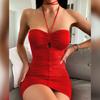 Este estilo usa tecidos de camada dupla, com peito vazado e design de cordão lateral, que é sexy e moderno, e o decote halter com cadarço destaca a personalidade; é adequado para casas noturnas e festas europeias e americanas ~