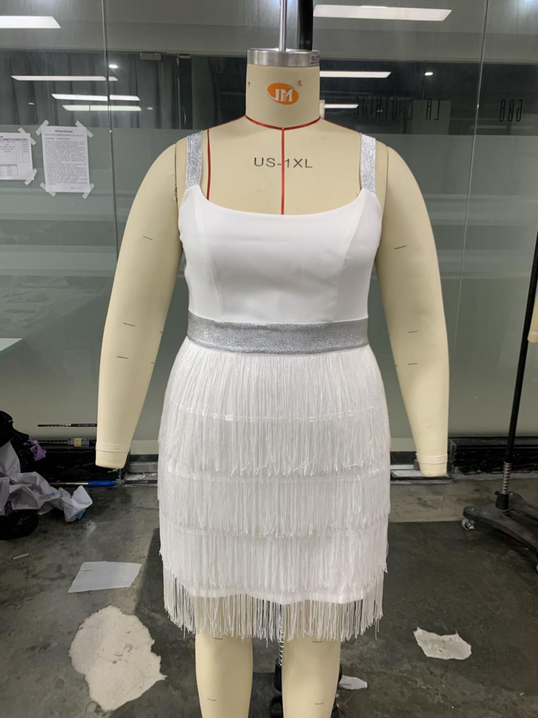 Europeo y Americano Comercio Exterior Transfronterizo E-commerce Talla Grande para Mujer Sexy Tirantes Sin Tirantes Falda con Flecos Cintura Swing Adelgazante Vestido de Noche Falda