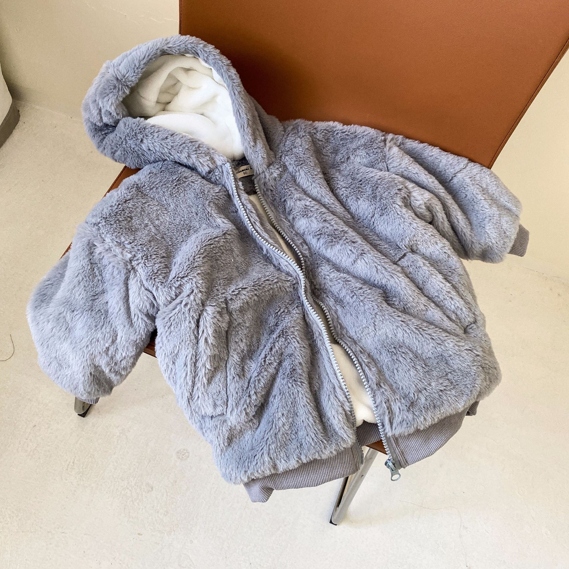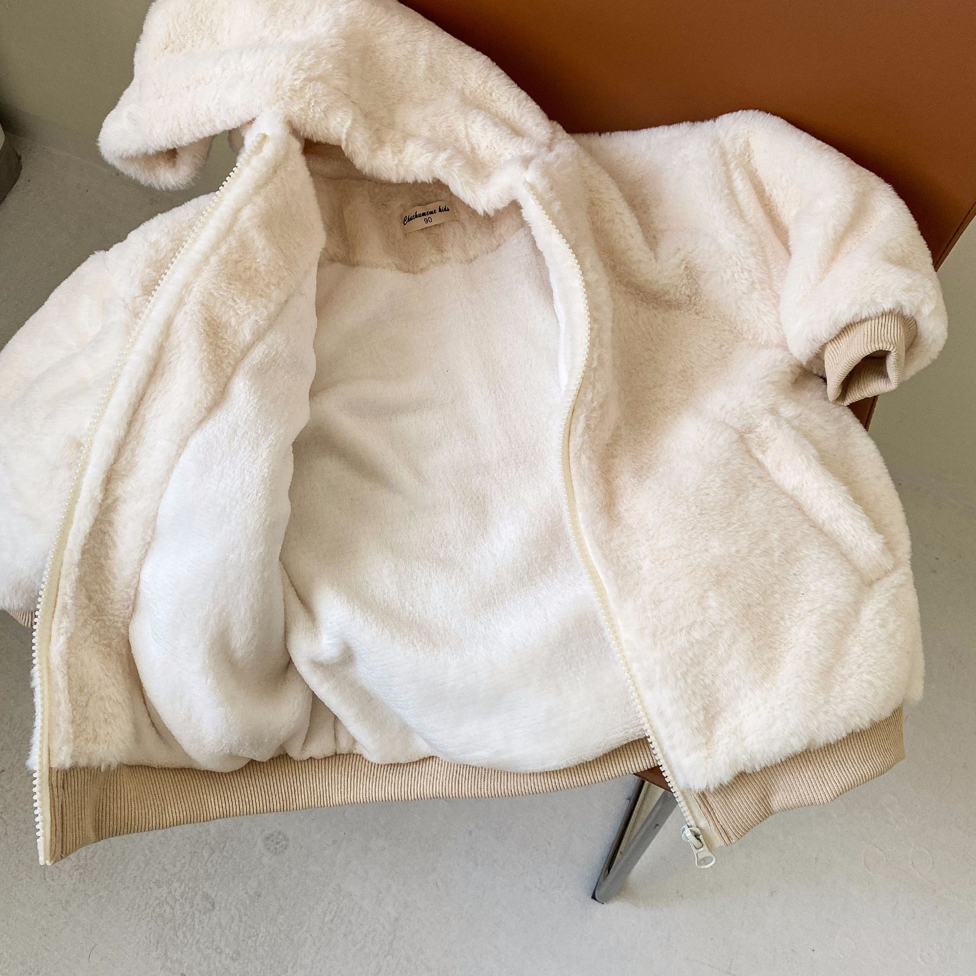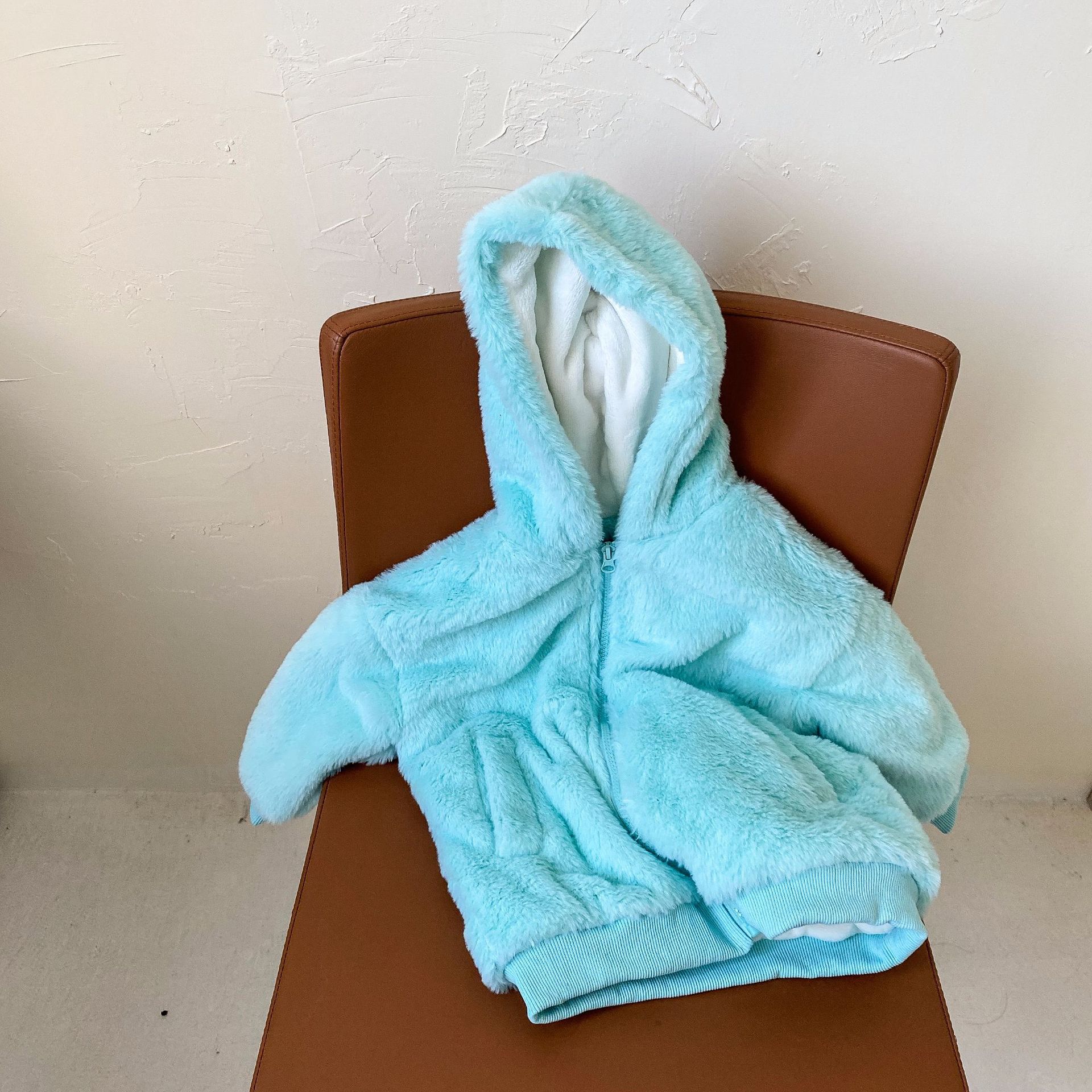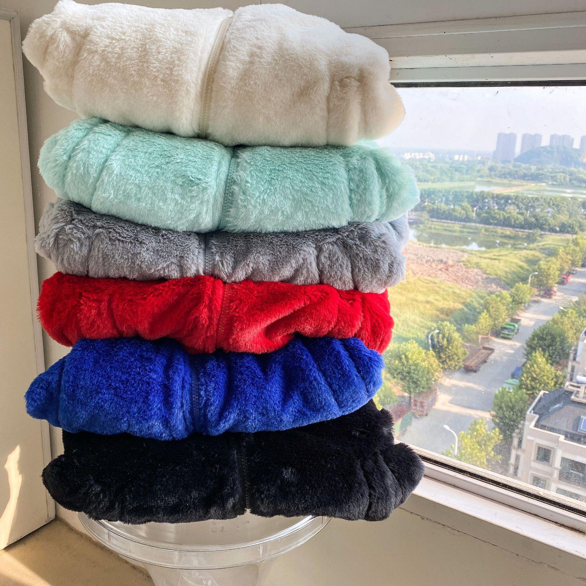 O pelúcia é muito macio e confortável, e o design com zíper na frente é à prova de vento.