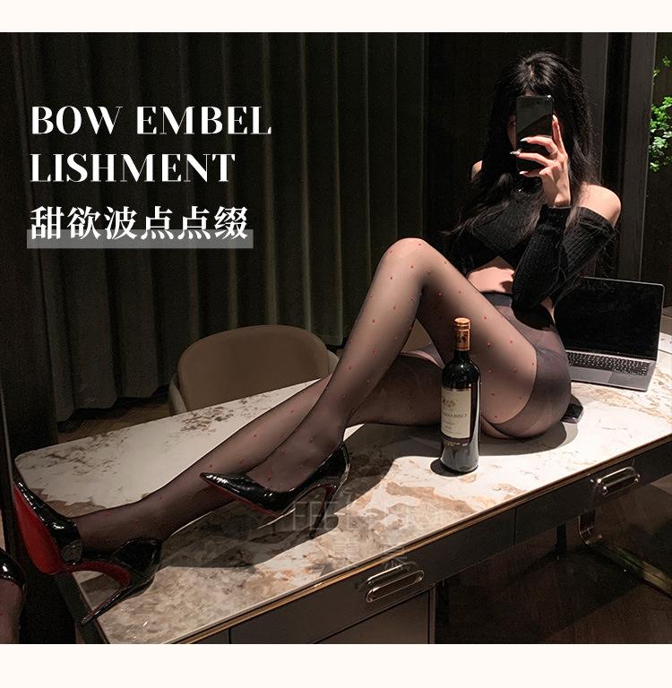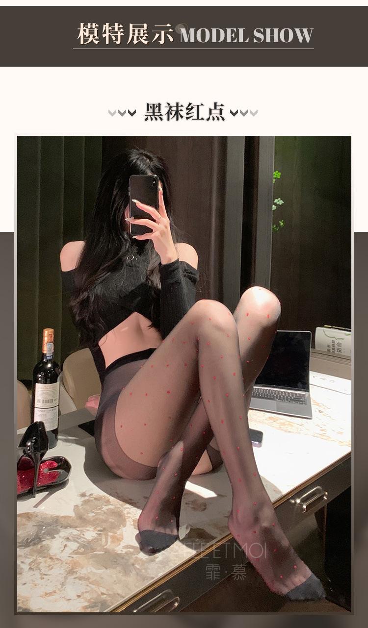[Pacote simples - sem papelão] Meias pretas de bolinhas [meia-calça de virilha aberta de peça única] 6976978548896 (preço limitado 15,9)