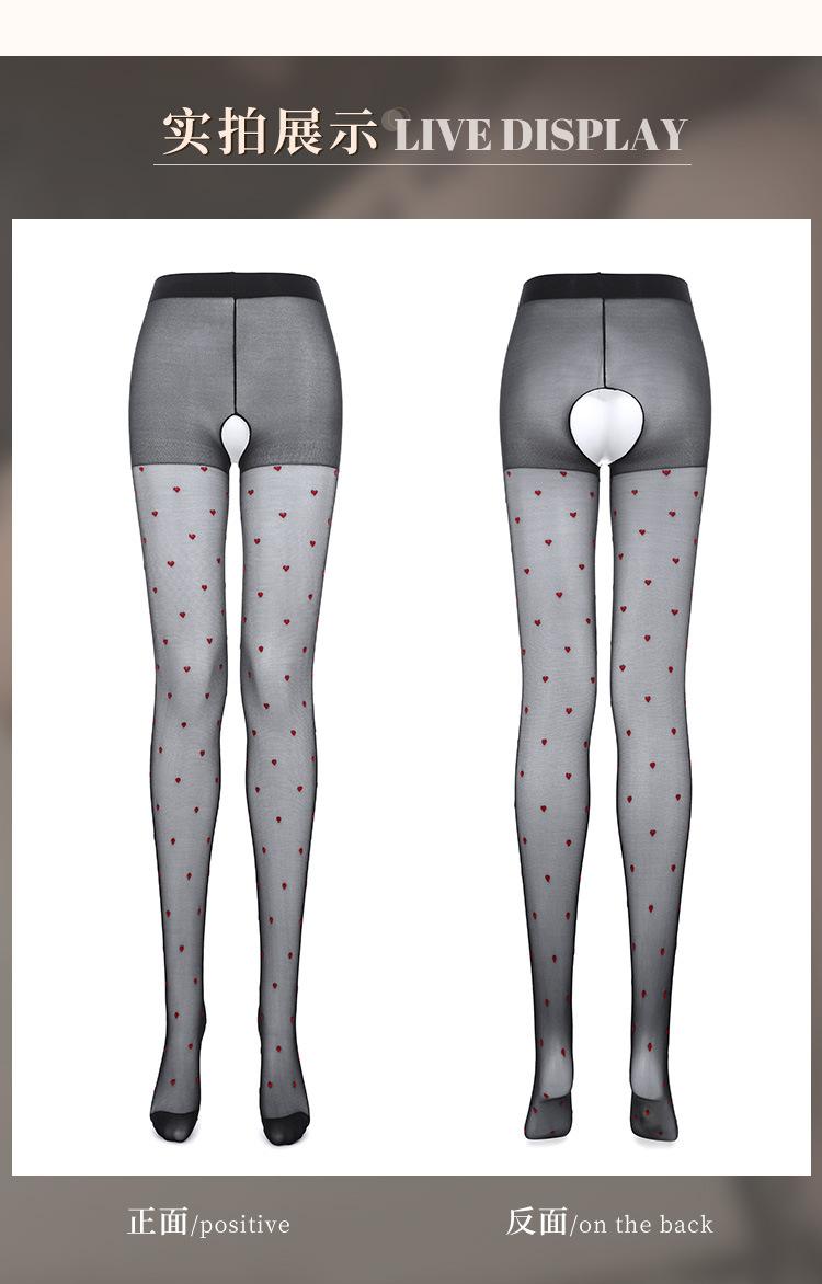 [Pacote simples - sem papelão] Meias pretas com coração de amor [meia-calça de virilha aberta de peça única] 6976978548889 (preço limitado 15,9)