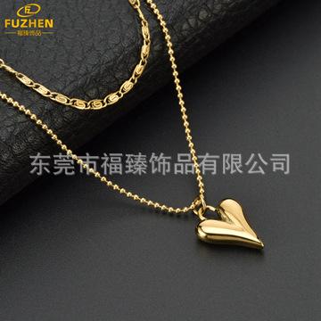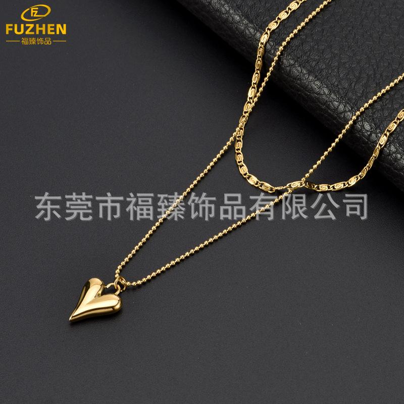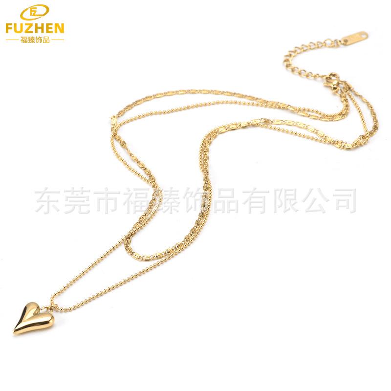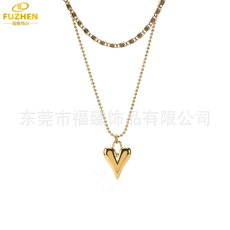 Colgante de acero de titanio con diseño de nicho, cadena de hueso de serpiente con cuentas de oro de 18 quilates, cadena de suéter con forma de corazón de melocotón, accesorios al por mayor