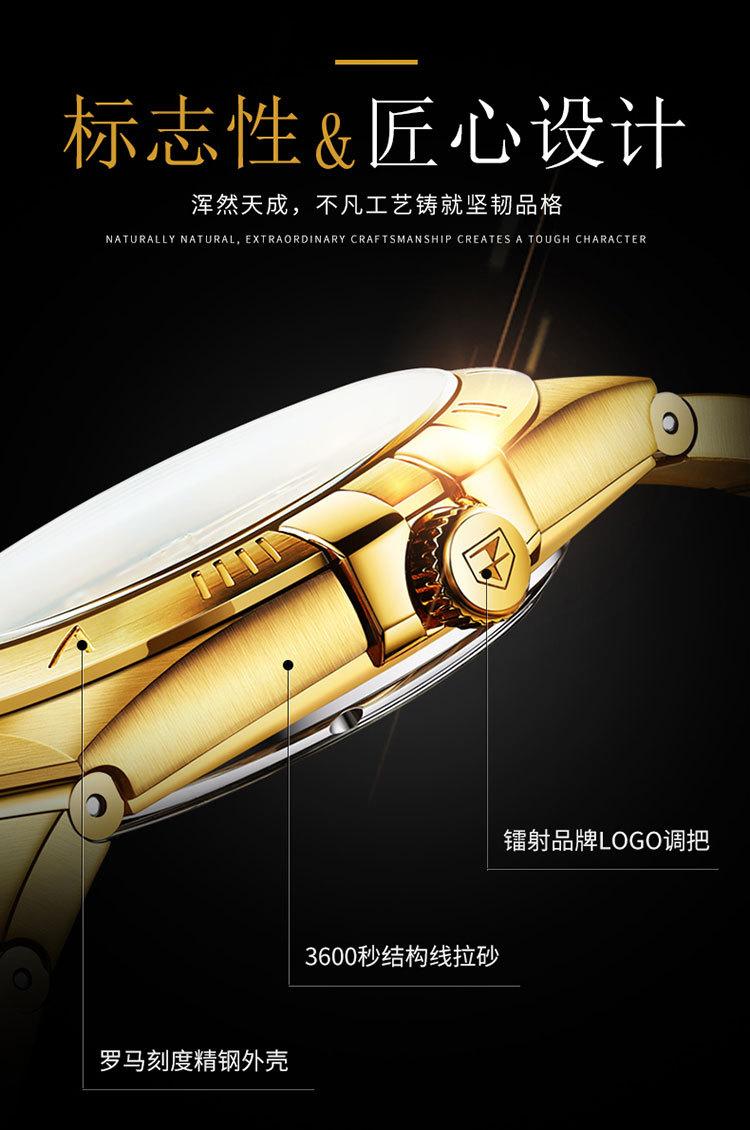 [Caja]: Caja de acero inoxidable, cuidadosamente pulida muchas veces, proceso de galvanoplastia al vacío en el horno, buena calidad, ¡sin decoloración durante mucho tiempo!