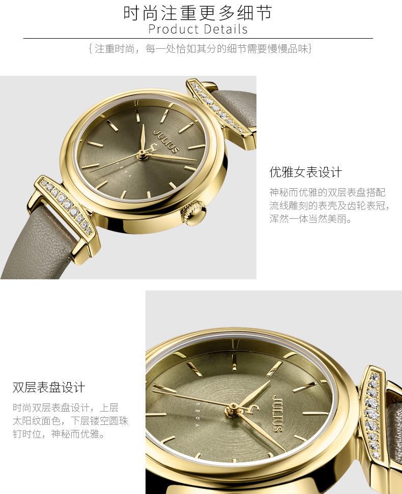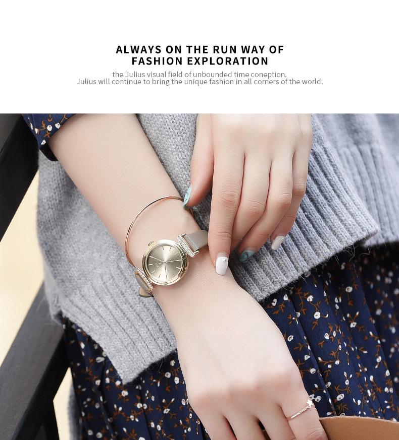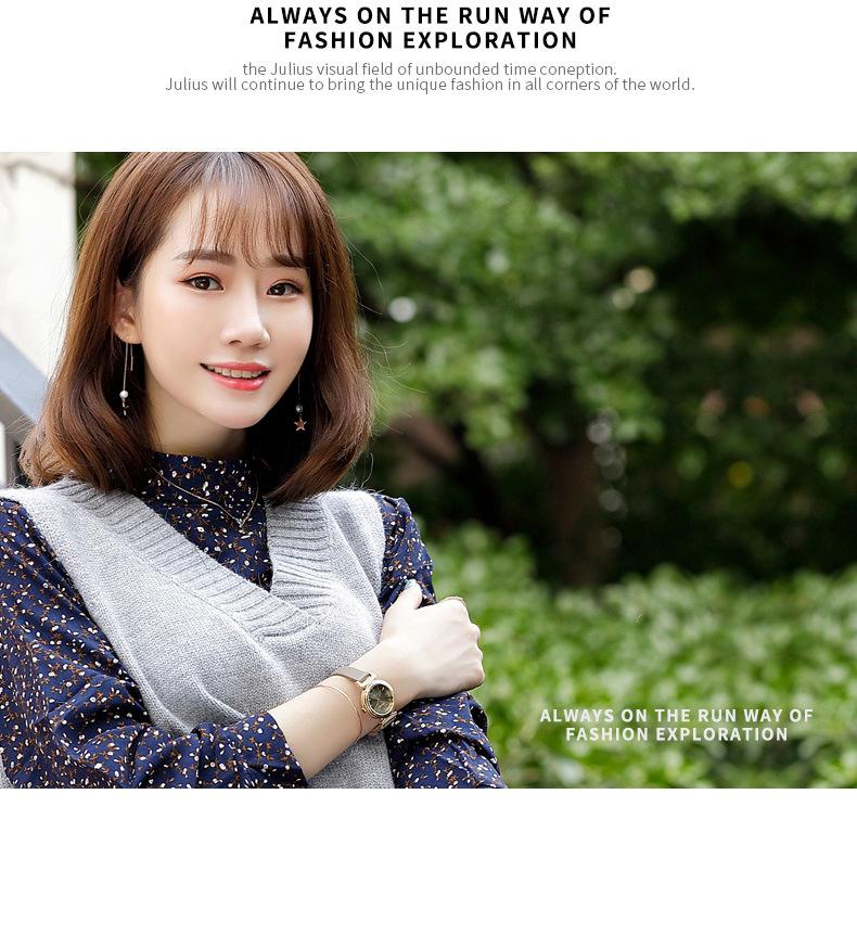 El significado de la marca JULIUS es alegre, único, amoroso, ideal, inusual y brillante. Es un reloj único que te enamorará a primera vista (Just You Will Love, un reloj único y especial). JULIUS toma este nombre y cuenta con siete series principales: Serie Clásica, Serie Emocionante, Serie Brazalete, Serie Exploración, Serie Pareja, Serie Hombre y Serie Edición Limitada.