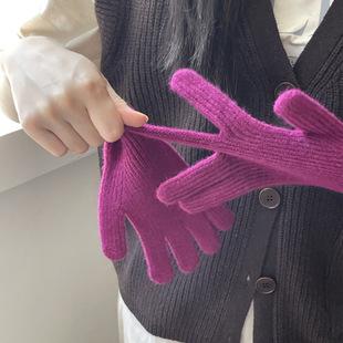 Guantes cálidos de punto con pantalla táctil coreanos, estilo celebridad de Internet, color sólido, lindos guantes de lana coreanos, cálidos para mujer, venta al por mayor |