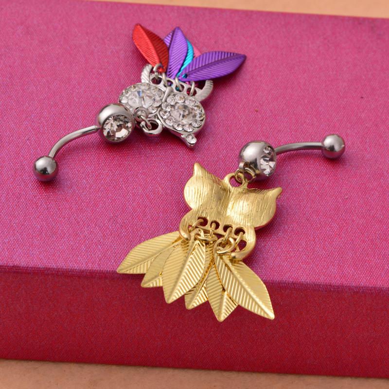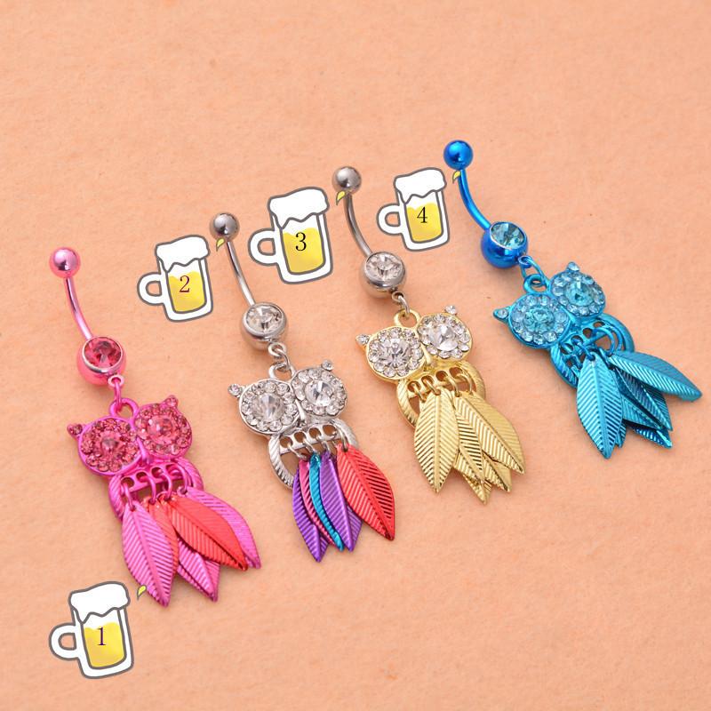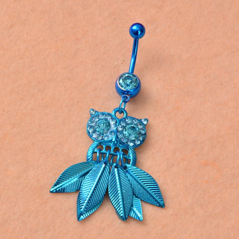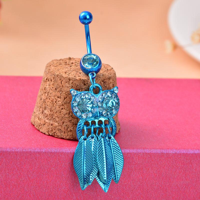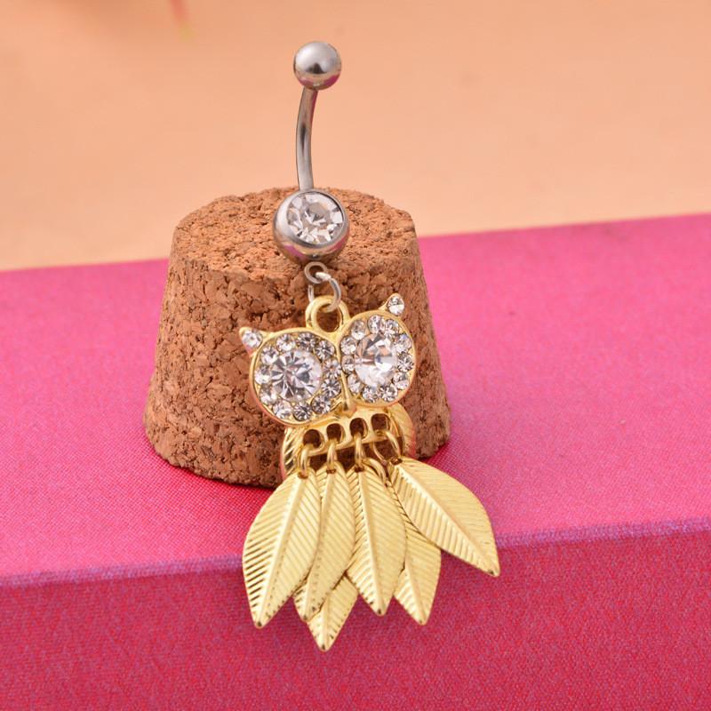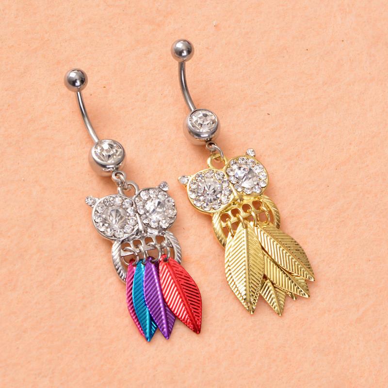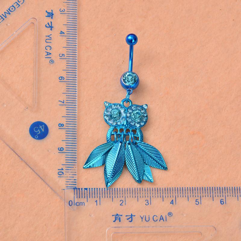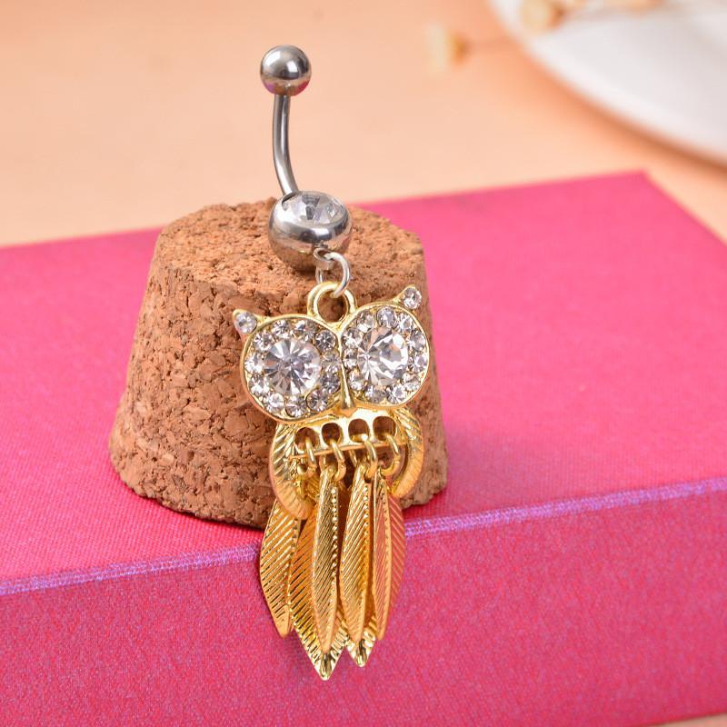 [Nombre]: Anillo para ombligo de búho con incrustaciones de diamantes de gran venta, clavo para ombligo, joyería para perforación corporal