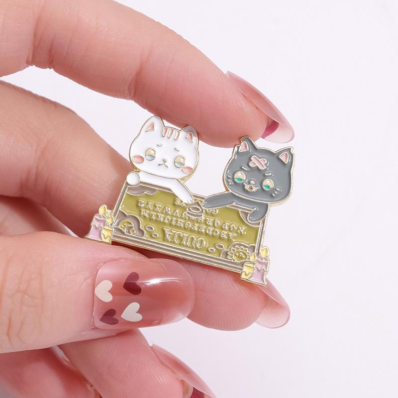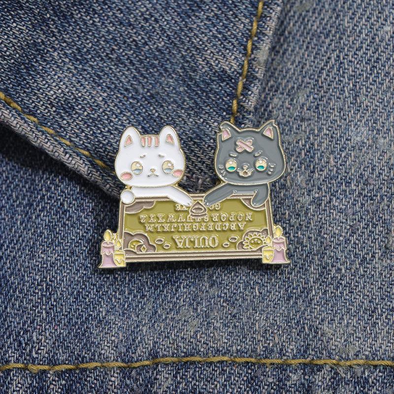 Lindo broche de metal con forma de gatito blanco y negro, personalidad creativa, serie animal, accesorios, insignia, venta al por mayor transfronteriza