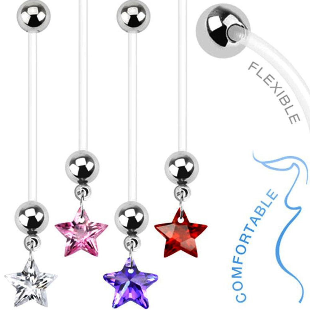 .Nome: Anel de umbigo com pingente de cinco estrelas em forma de coração