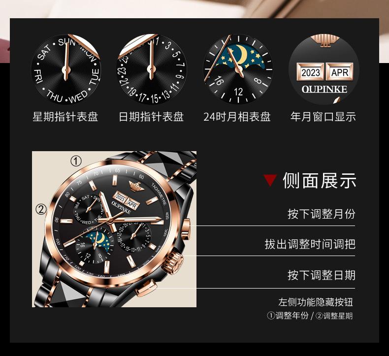 [Movimento]: Movimento mecânico totalmente automático original, melhor qualidade, cronometragem estável e precisa!
