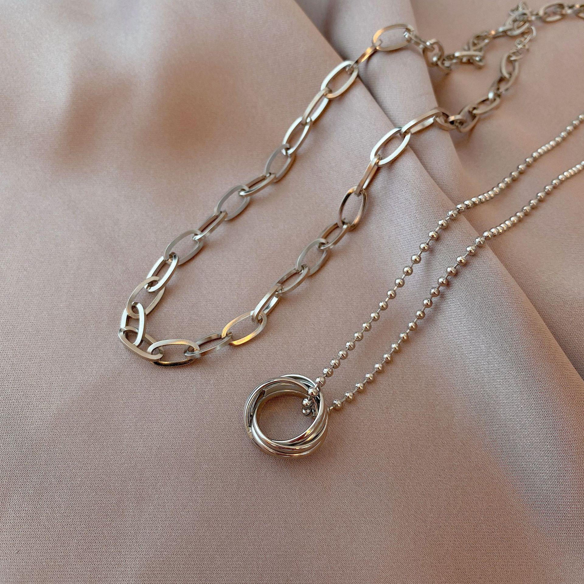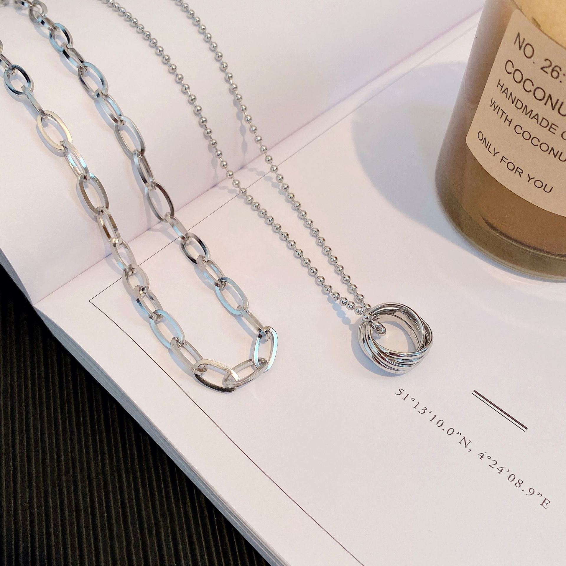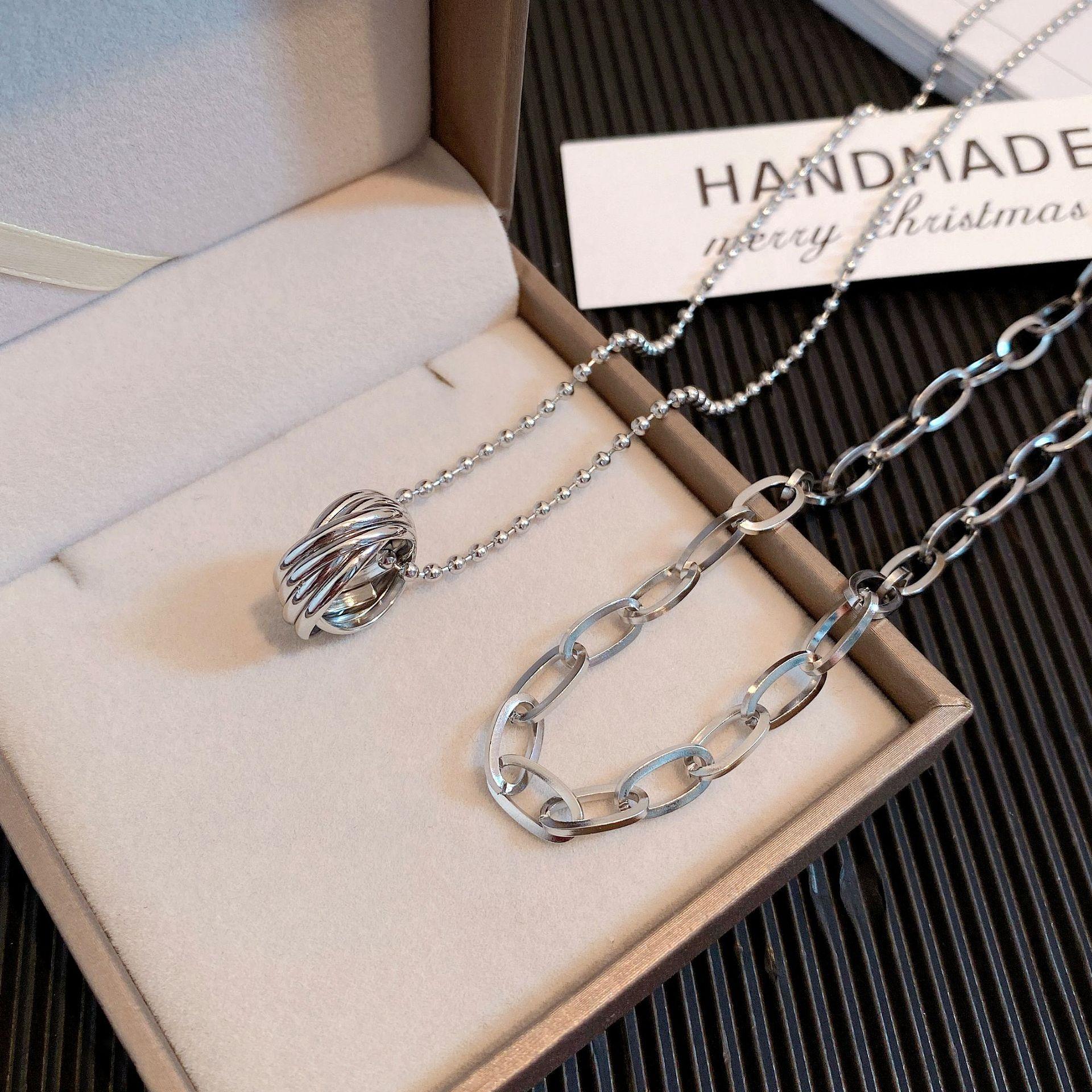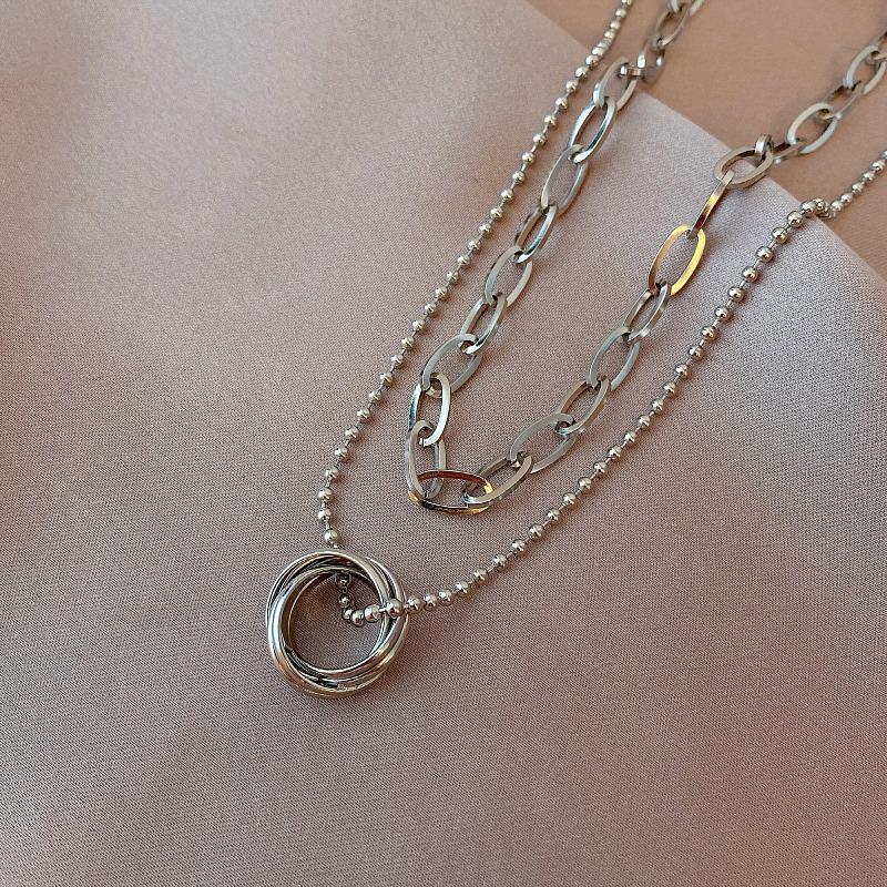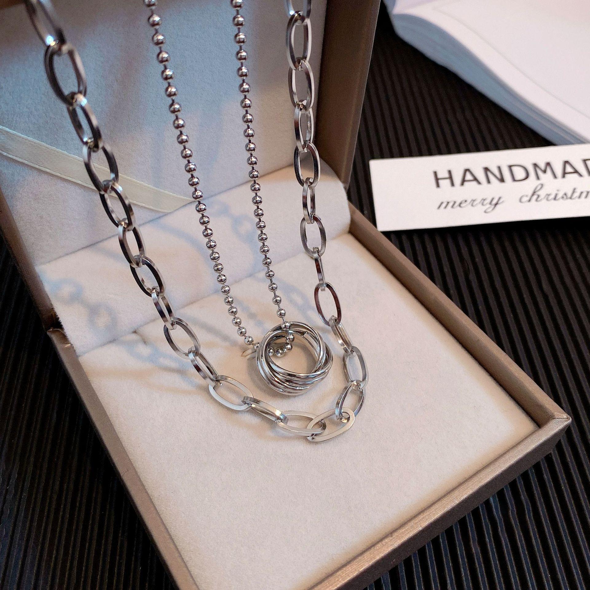 Compre Colar de Aço Titânio Design Simples das Mulheres ins Coreano Camada Dupla Elegante Estilo Frio Clavícula Cadeia Colar Colar Novo Estilo no atacado no Joom.pro