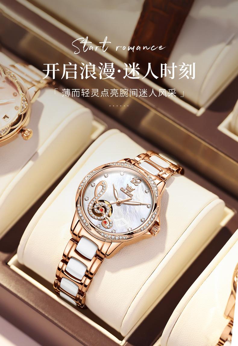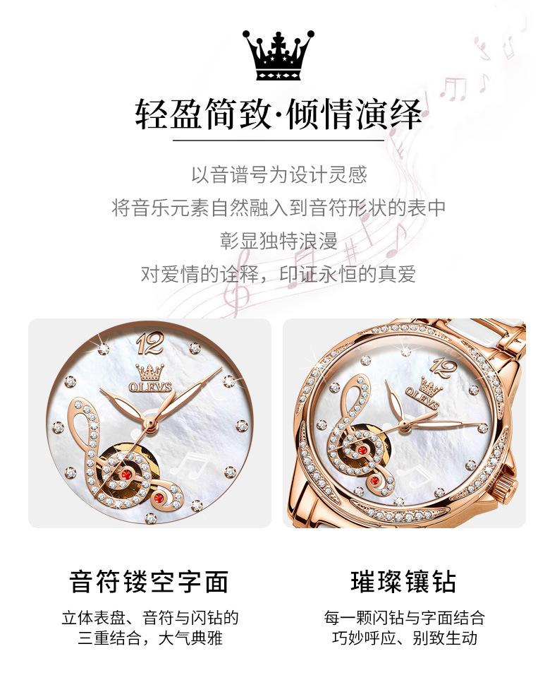 【Ponto de venda】:Relógio feminino moderno com notas musicais cravejado de diamantes, estilo deusa confortável e moderno para uso diário!