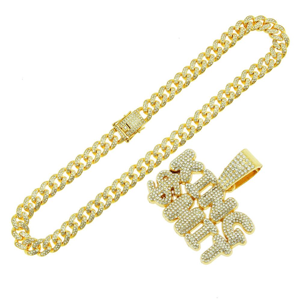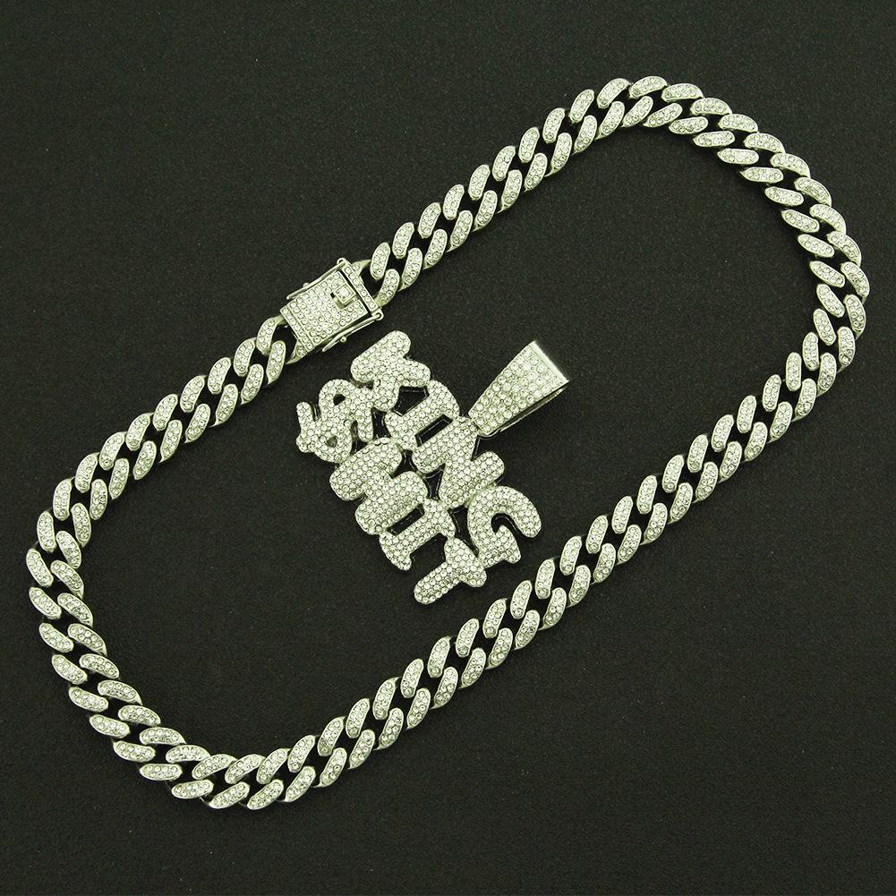 Collar dominante para hombre con colgante de letra de diamante completo, cadena cubana ancha, estilo hip hop, hip-hop, baile callejero europeo y americano