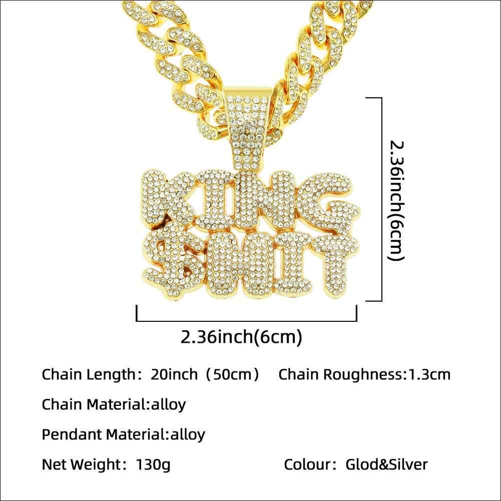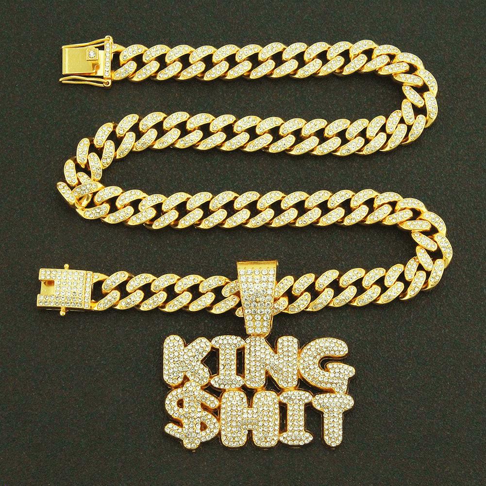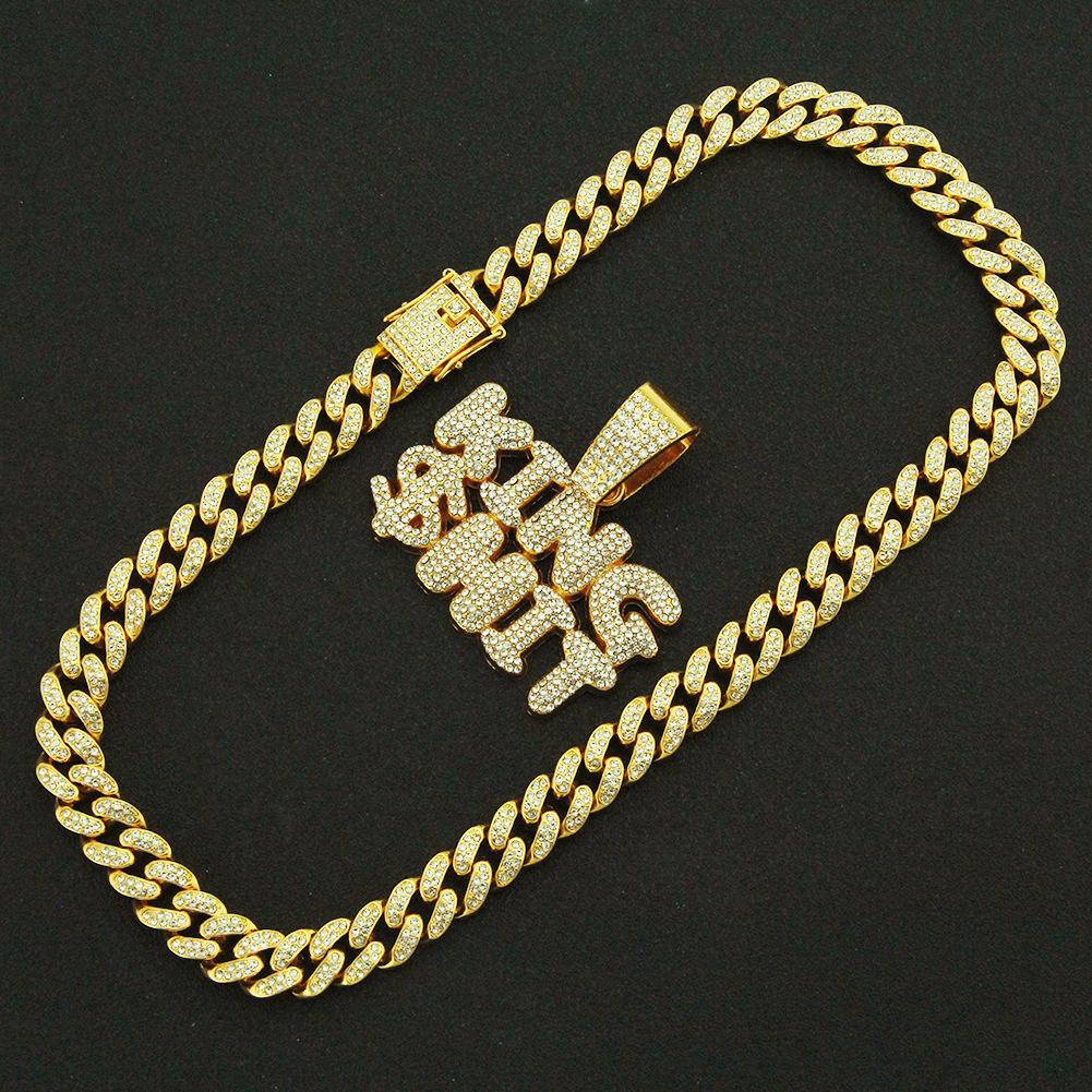Collar con colgante de letra de diamante con diseño de rey exagerado de hip-hop europeo y americano para hombre, accesorios de cadena cubana dominantes y geniales, joyería