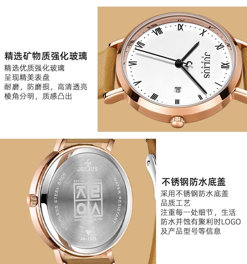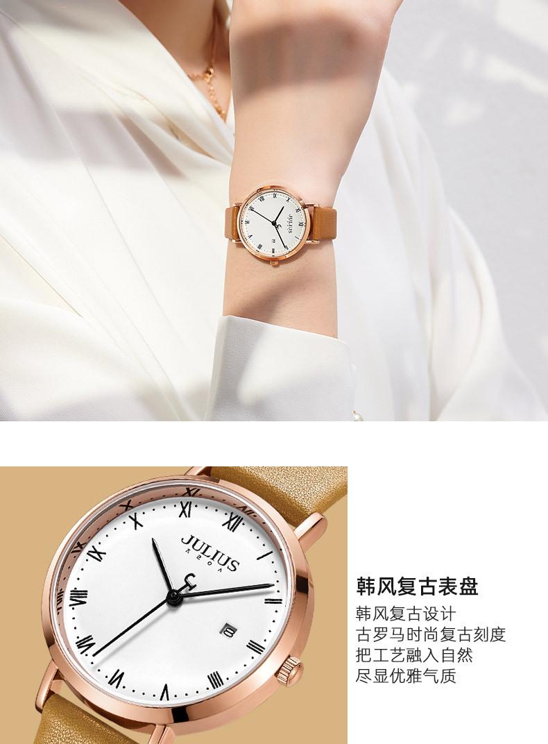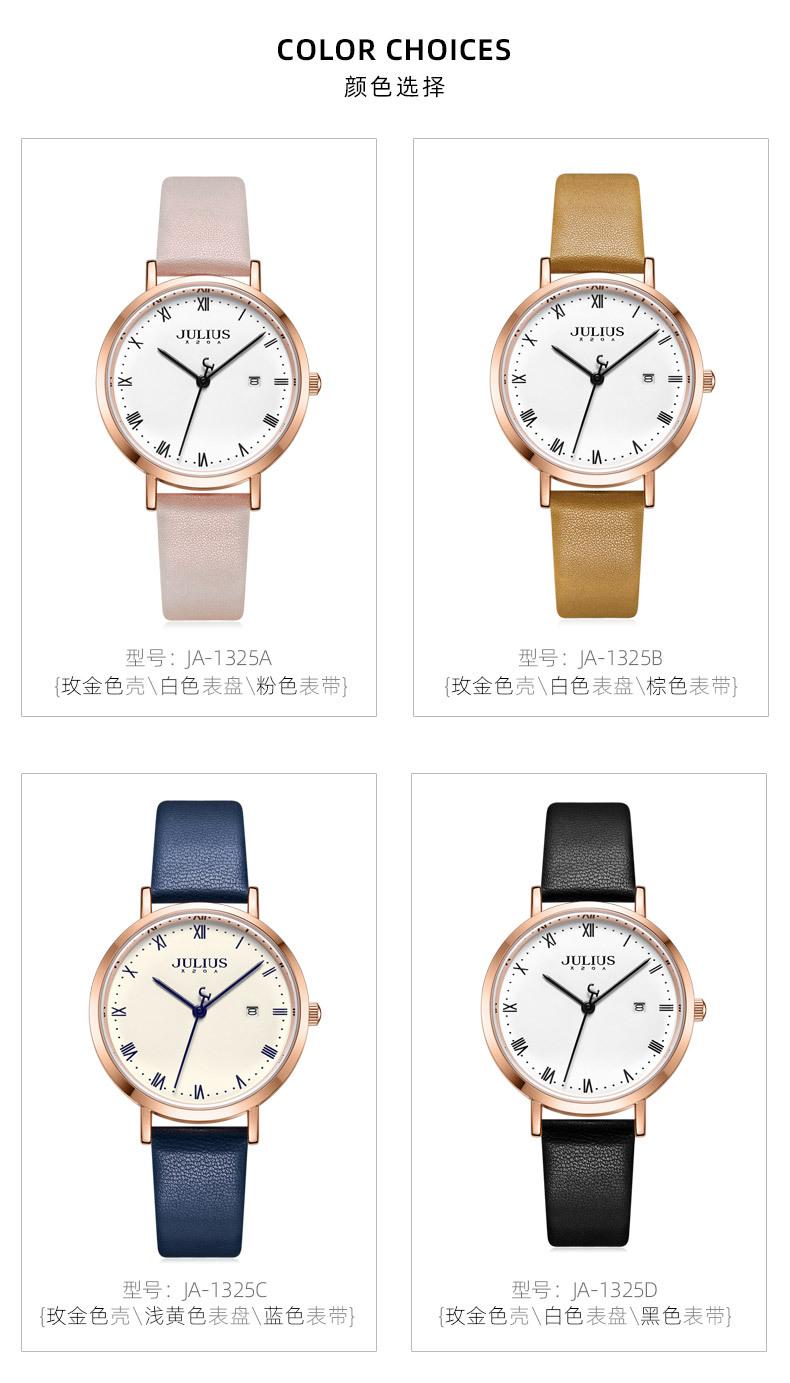 El significado de la marca JULIUS es alegre, único, amoroso, ideal, inusual y brillante. Es un reloj único que te enamorará a primera vista (Just You Will Love, un reloj único y especial). JULIUS toma este nombre y cuenta con siete series principales: Serie Clásica, Serie Emocionante, Serie Brazalete, Serie Exploración, Serie Pareja, Serie Hombre y Serie Edición Limitada.