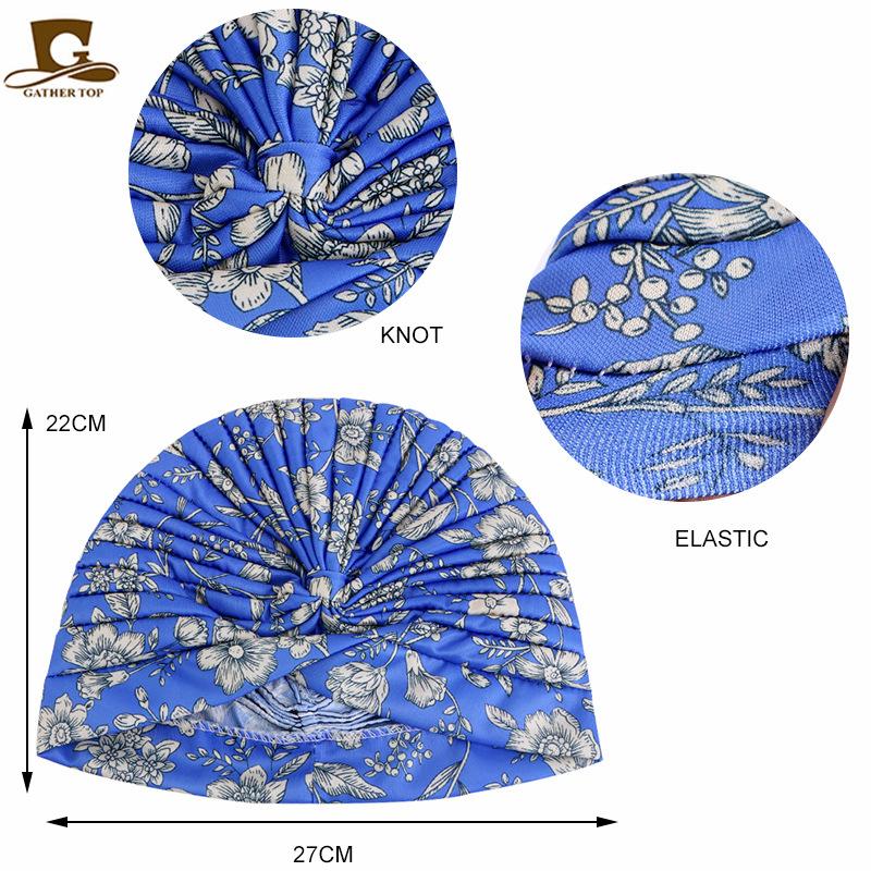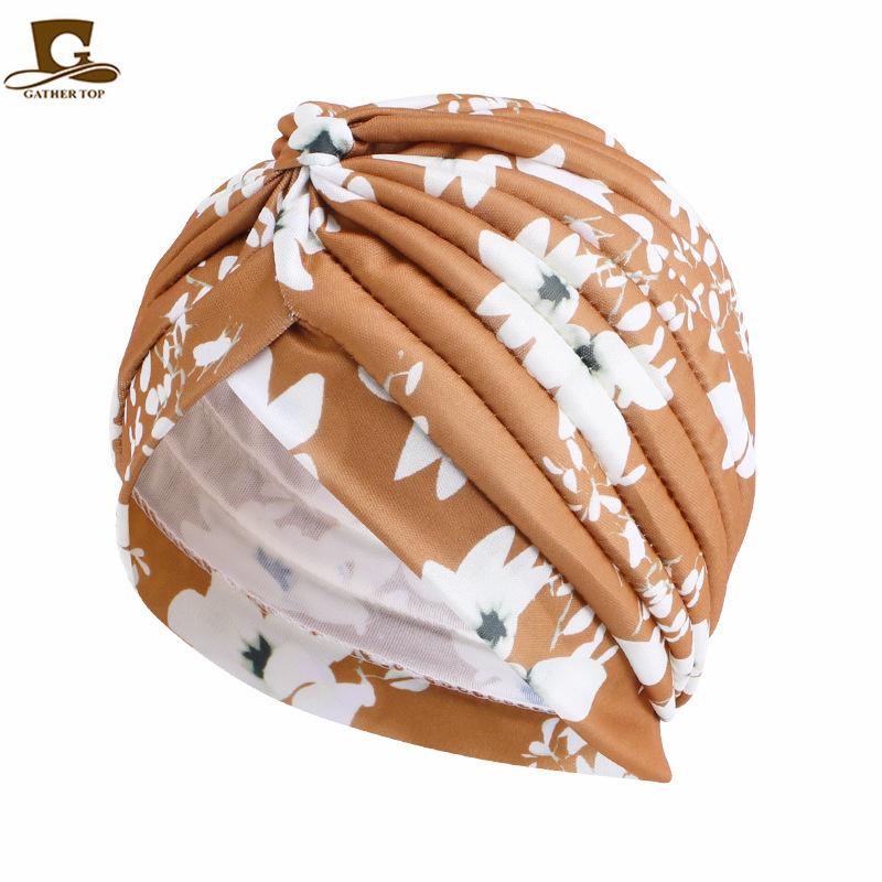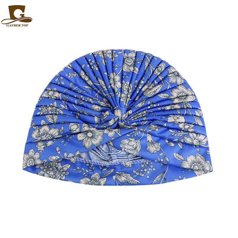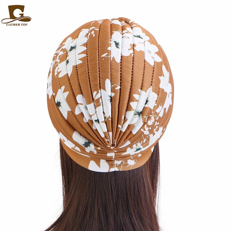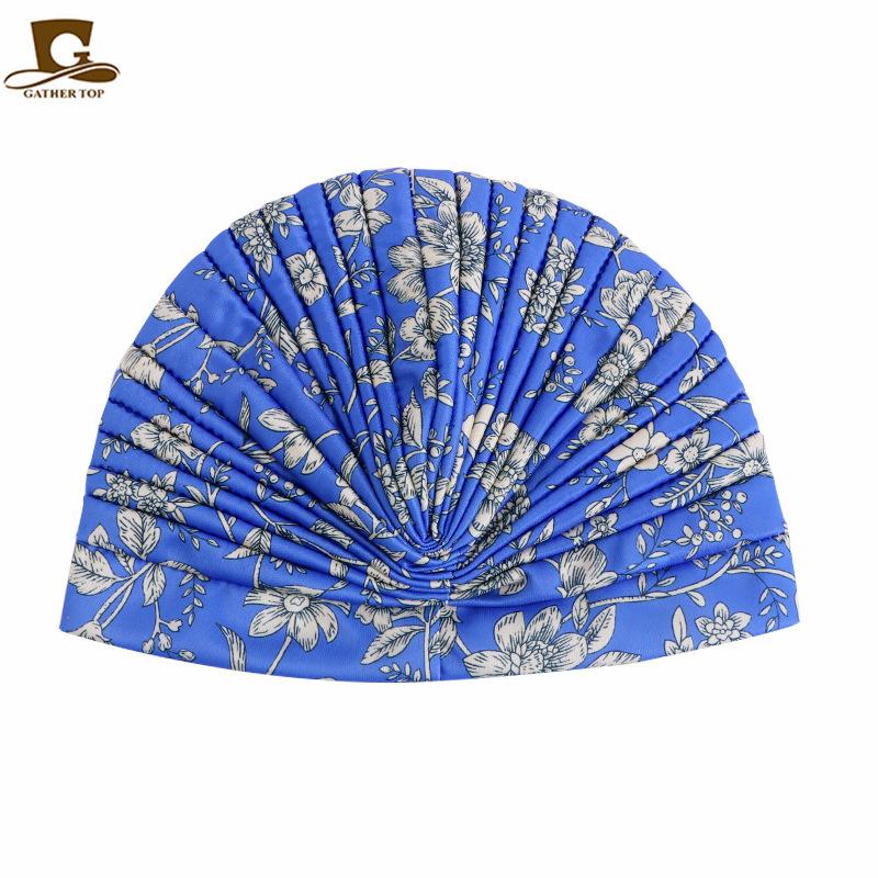 Chapéu turbante plissado estampado estilo pastoral chapéu indiano chapéu étnico baotou touca de dormir touca para quimioterapia JDT-412A