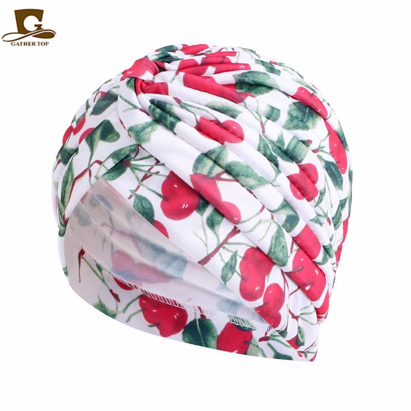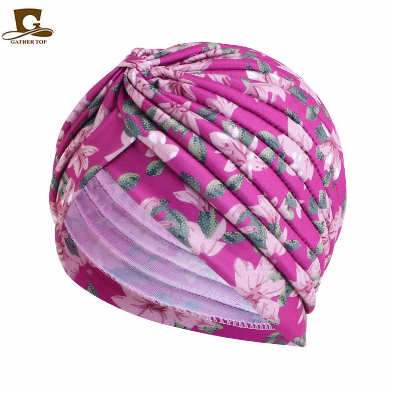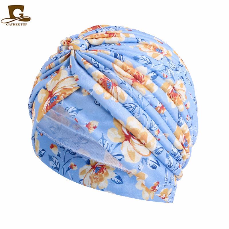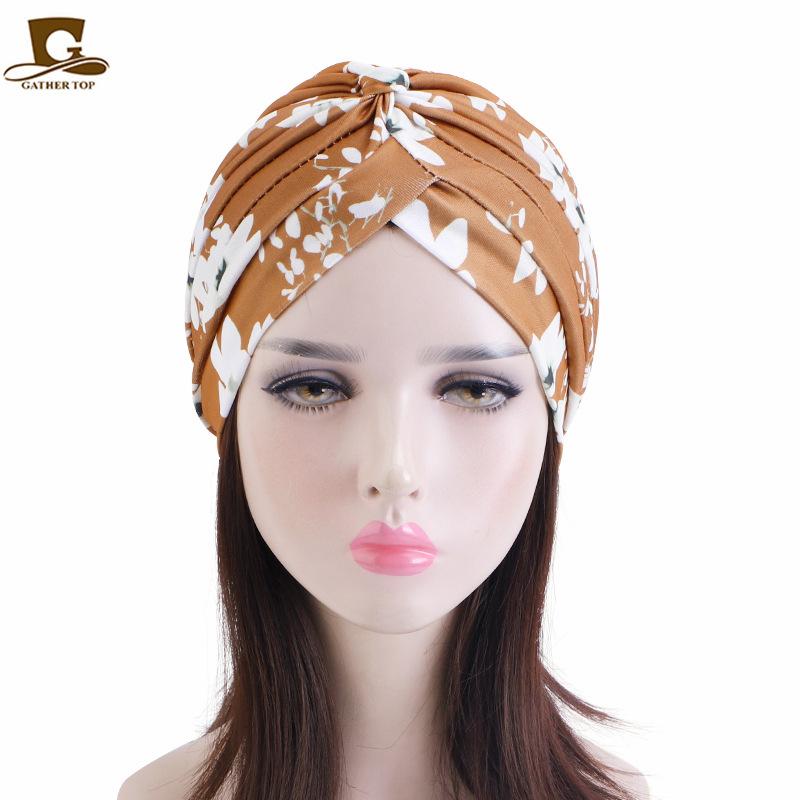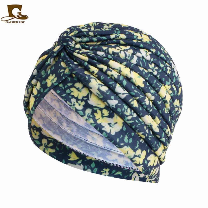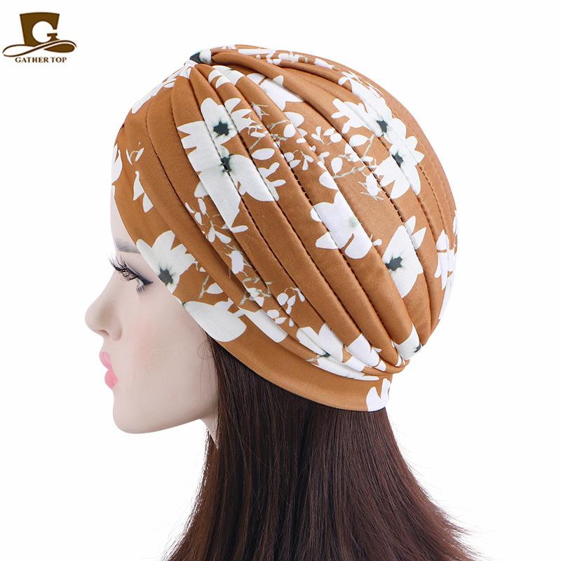 Chapéu turbante plissado estampado estilo pastoral chapéu indiano chapéu étnico baotou touca de dormir touca para quimioterapia JDT-412A