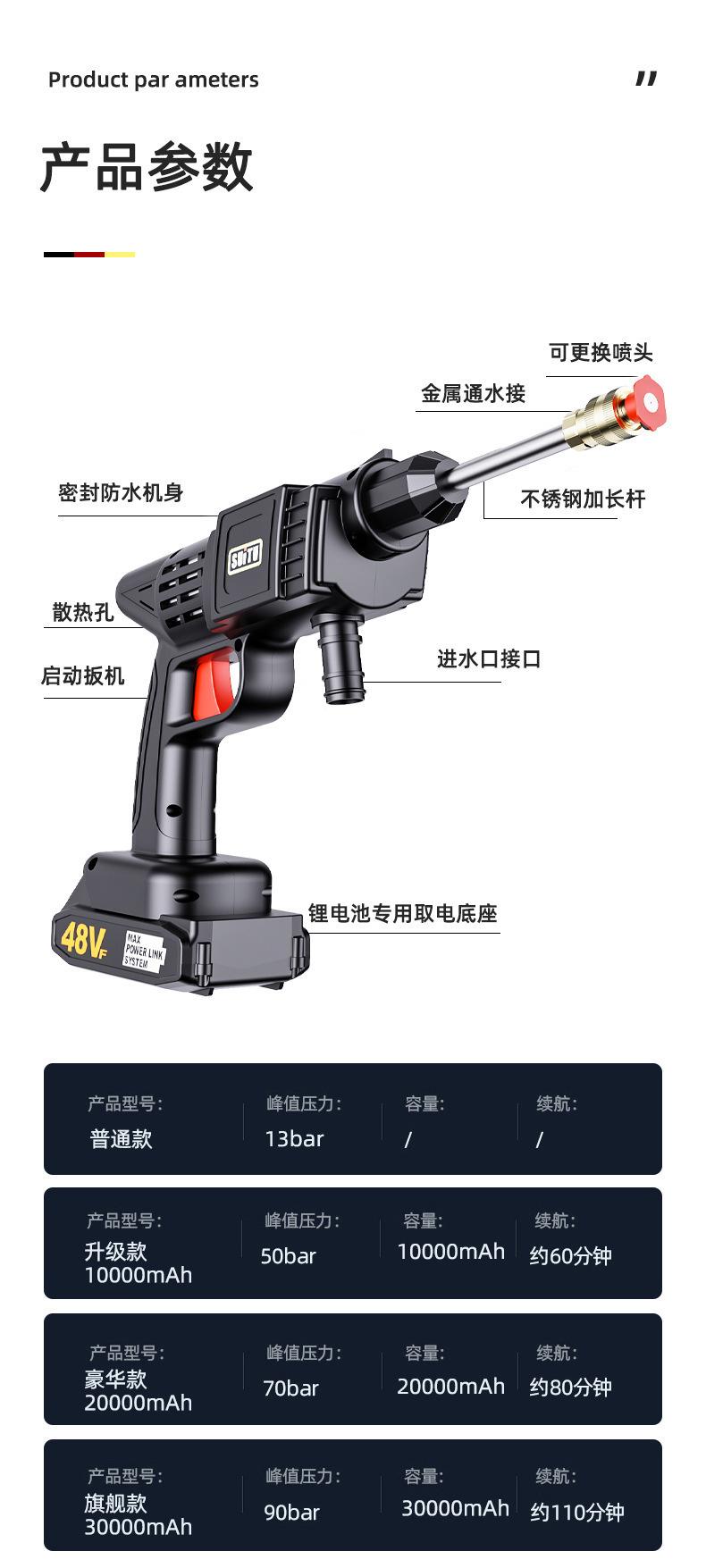 【ST-6315APistola de agua para lavado de autos con batería de litio SuiTuAcombinación5Ahorro de batería1,9 kilos