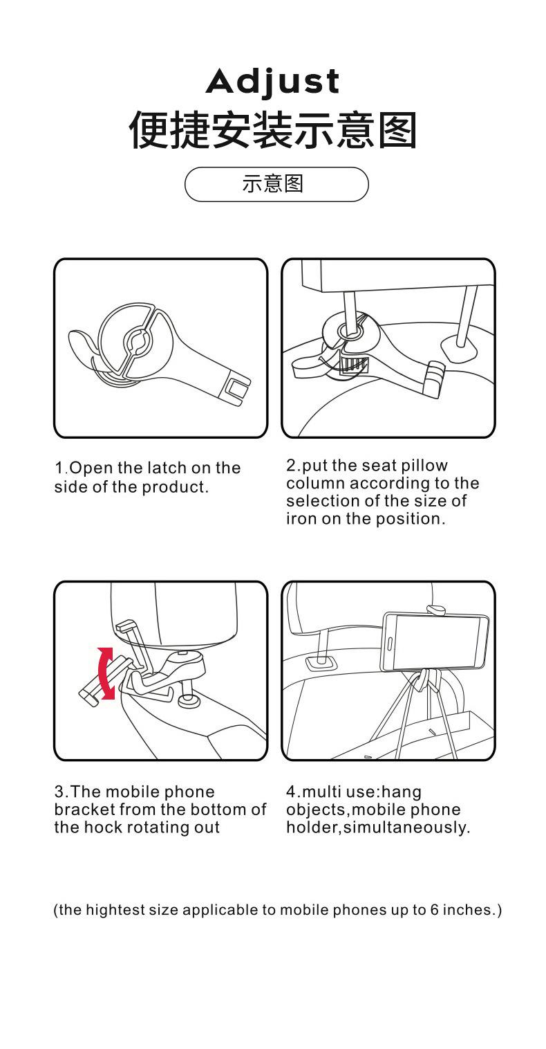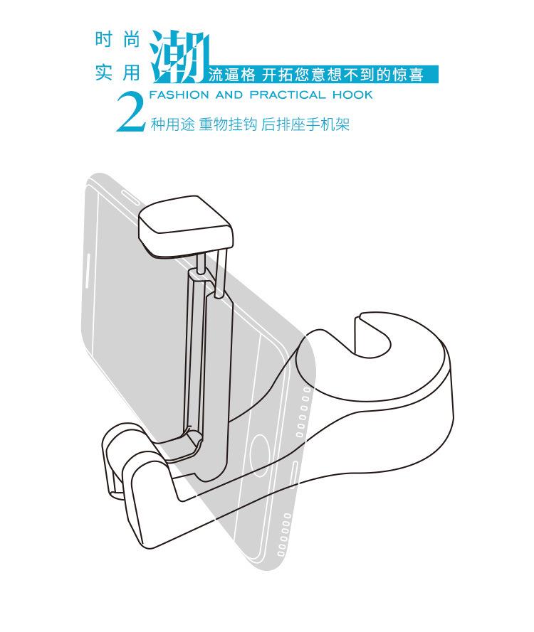 Fabricantes de vendas diretas carro gancho de cabeça dupla suporte para celular carro criativo assento traseiro suporte para celular assento de carro gancho traseiro