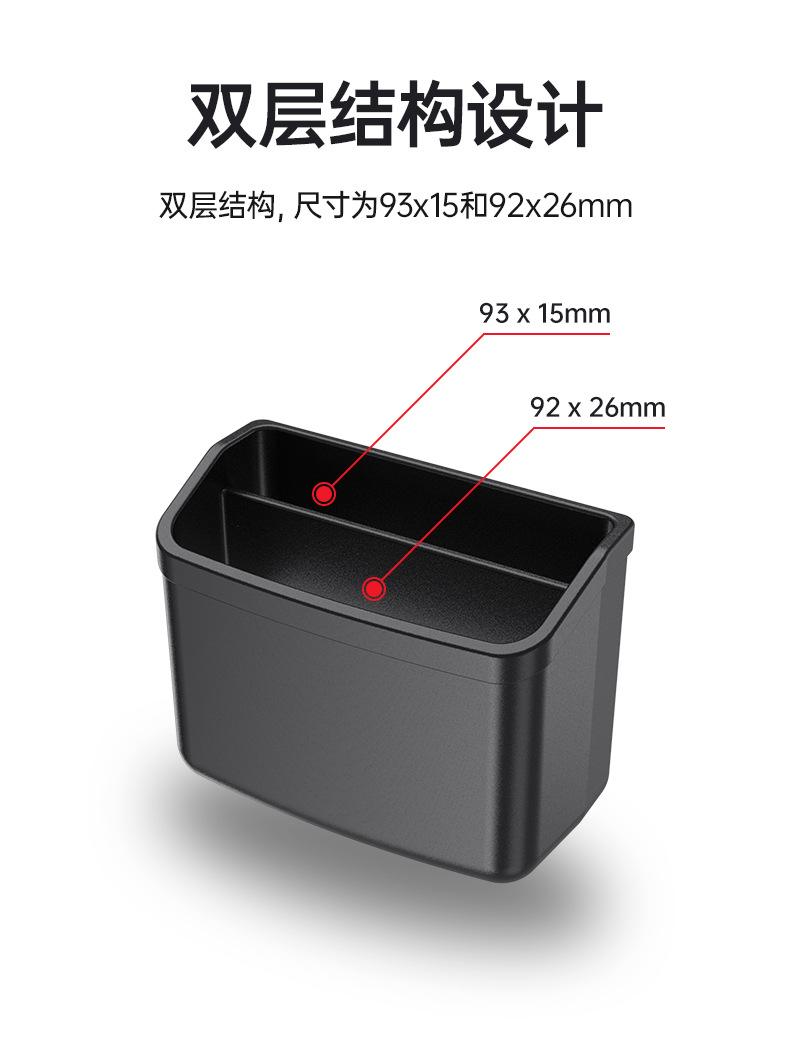 2. Este produto é dividido em dois designs, com tamanhos de 93*15mm e 92*26mm respectivamente. Ele pode segurar celulares e cigarros ao mesmo tempo e armazenar facilmente itens pequenos.