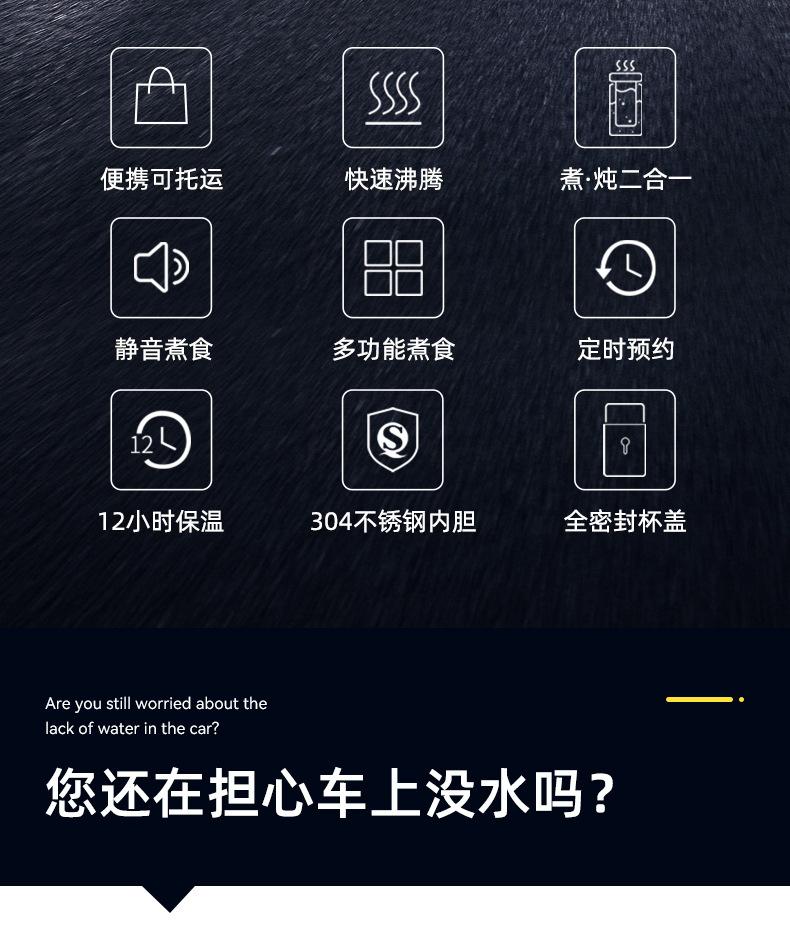 [Tempo de aquecimento]: modo 12 V, cerca de 60 minutos a 100 graus Celsius (o tempo específico de fervura da água varia de acordo com o nível atual de diferentes modelos e a temperatura ambiente)