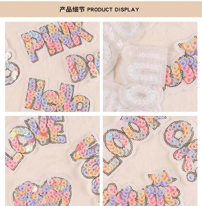 [Nota] Los parches con lentejuelas, cuentas, pedrería, flores de seda, bolas de pelo y bordados con hilo metálico deben plancharse primero por detrás y luego recortarse por delante, una vez fijados firmemente. Esto evitará dañar las lentejuelas u otros accesorios de la parte delantera. Mantenga la ropa (u otros textiles) seca y no rocíe agua sobre los parches de tela ni sobre la ropa con la plancha al plancharlos. Una vez planchado, el parche de tela generalmente se adhiere bien a la ropa (u otros textiles) durante mucho tiempo. Si el parche se desprende después de un tiempo o después del lavado, significa que la temperatura de la plancha es demasiado baja o el tiempo de planchado es demasiado corto. Puede repetir la operación original y planchar el parche de nuevo.