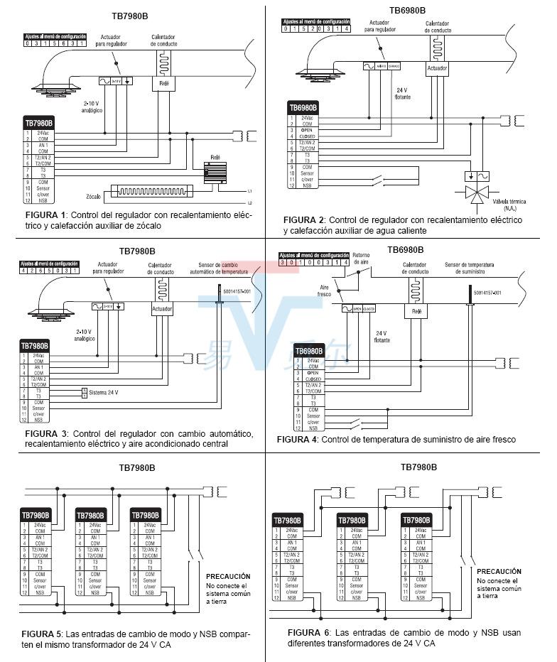 Diagrama de cableado del termostato digital TB6980/TB7980