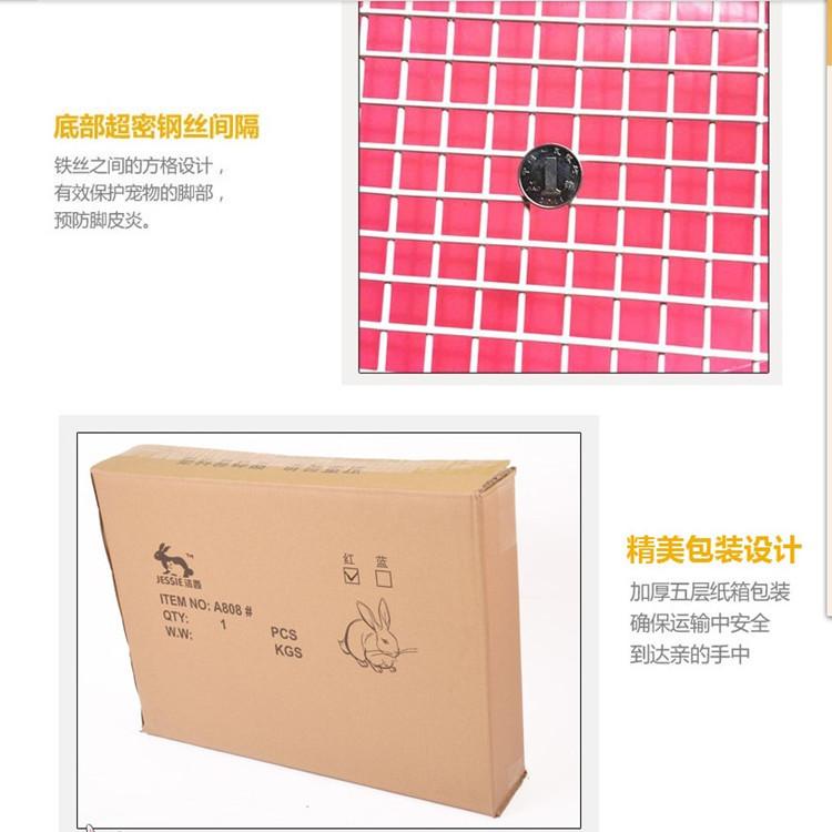 Características del producto: La bandeja inferior tiene un diseño independiente, lo que facilita su limpieza. Al limpiar la bandeja inferior, se puede separar directamente la capa superior sin sacar al conejo de la jaula; el amplio diseño de salida facilita la entrada y salida del conejo; el nuevo diseño de rejilla inferior evita que las patas del conejo se atasquen, y el exclusivo diseño de hebilla de la puerta de seguridad es más seguro y fiable.