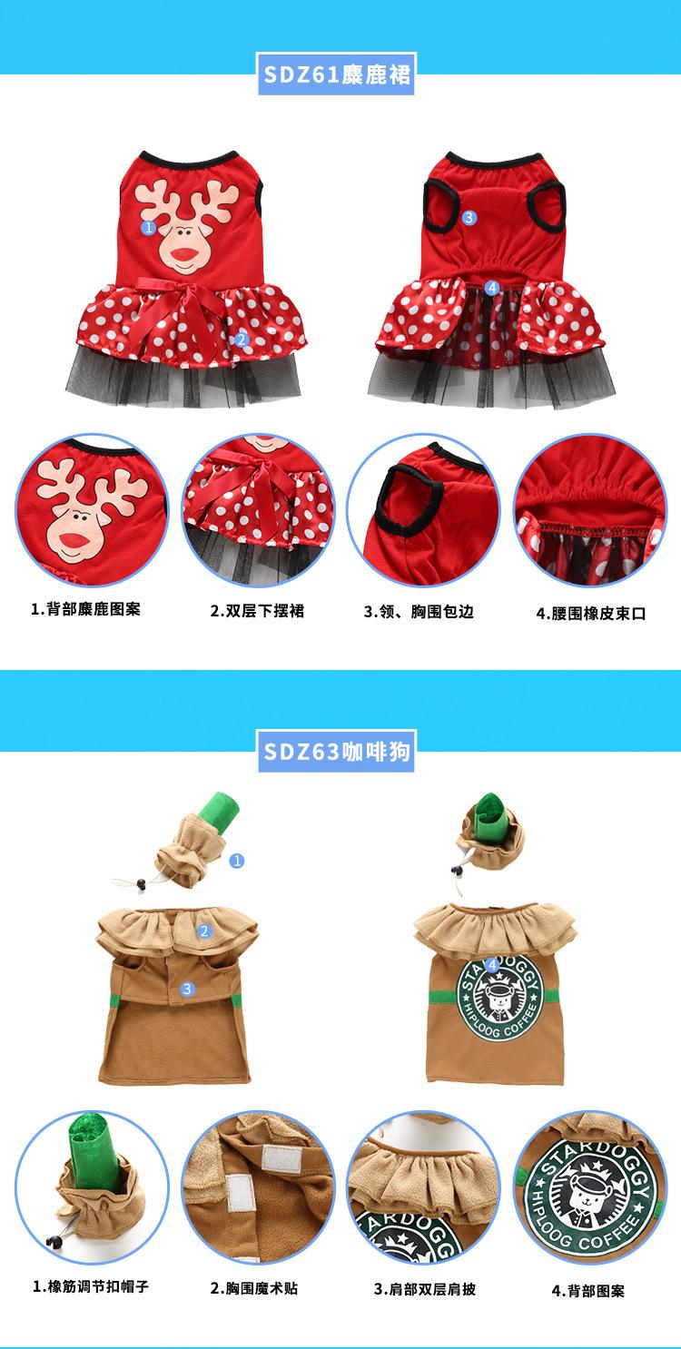 SDZ43 Oso Navideño: Talla S: 47 gramos Talla M: 57 gramos Talla L: 66 gramos Talla XL: 75 gramosVestido de Navidad SDZ44: Talla S: 37 gramos Talla M: 46 gramos Talla L: 55 gramos Talla XL: 64 gramos