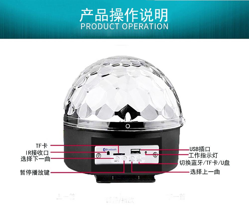 Bluetooth de 9 coloresMúsica mp3 con control remotoBola mágica de cristal láser para escenario, luz de flash giratoria colorida con control de voz para KTV