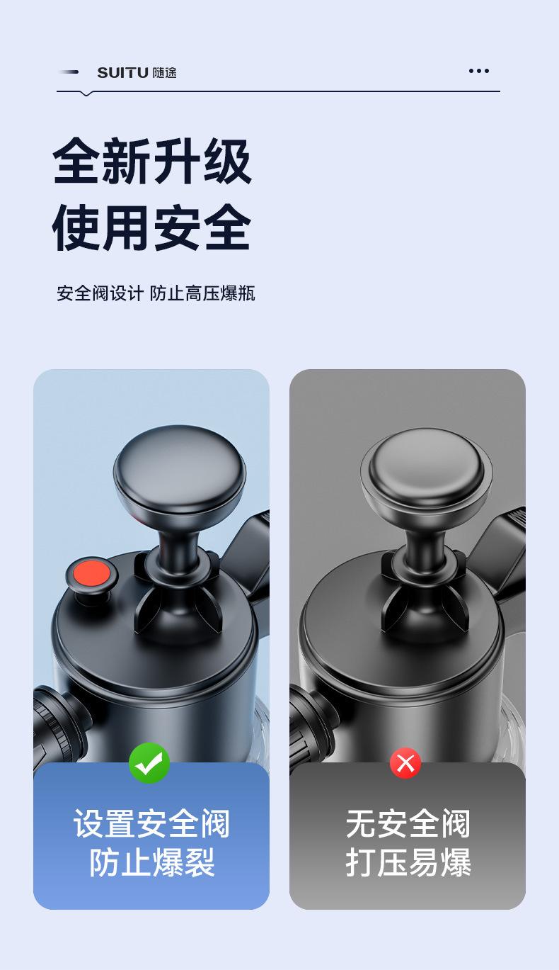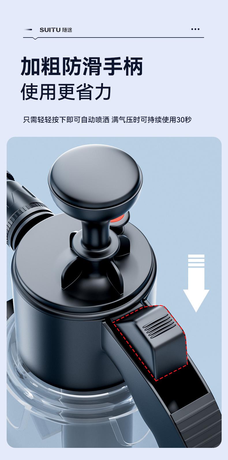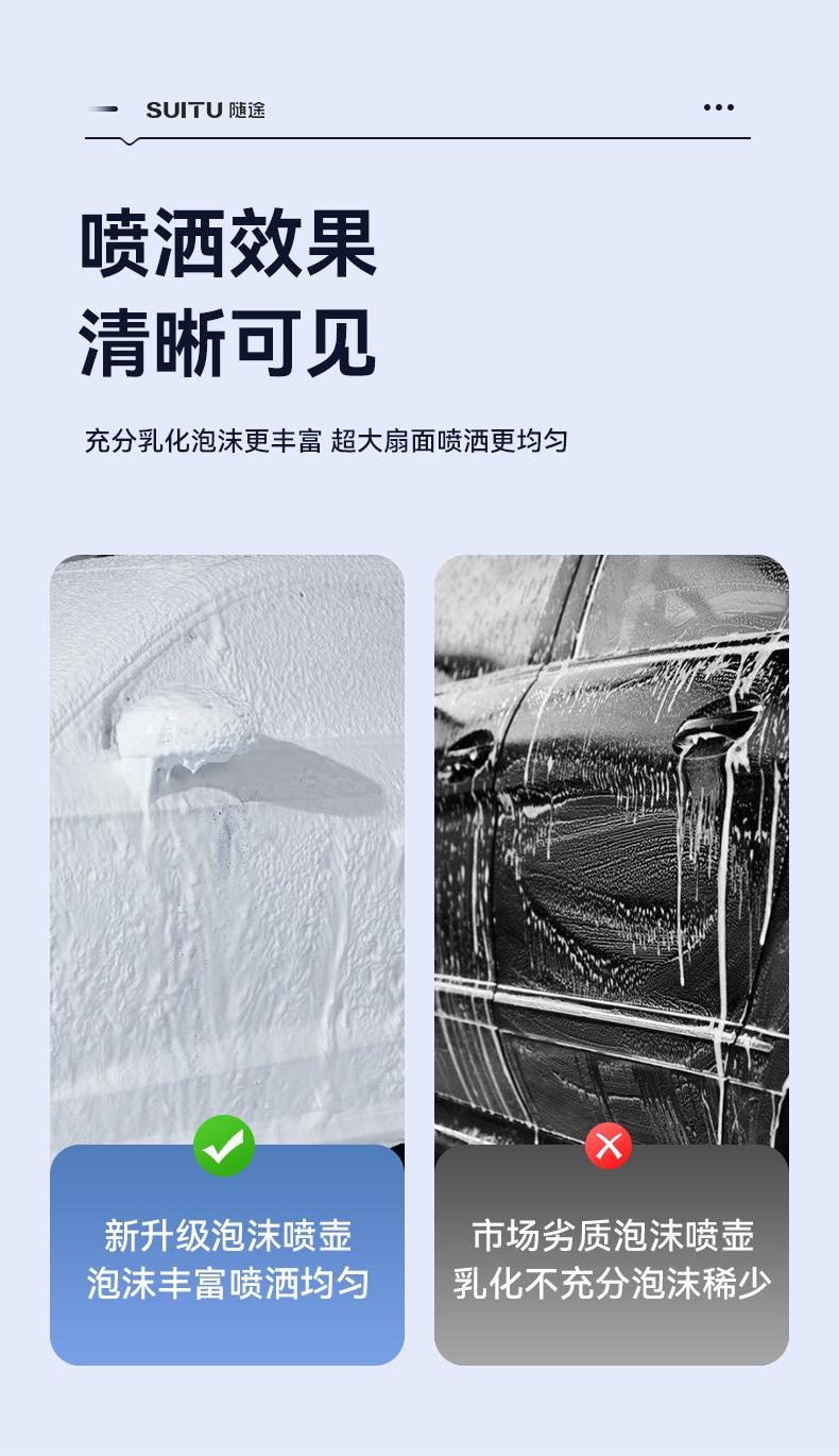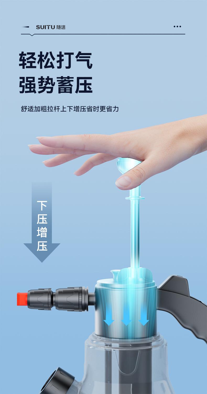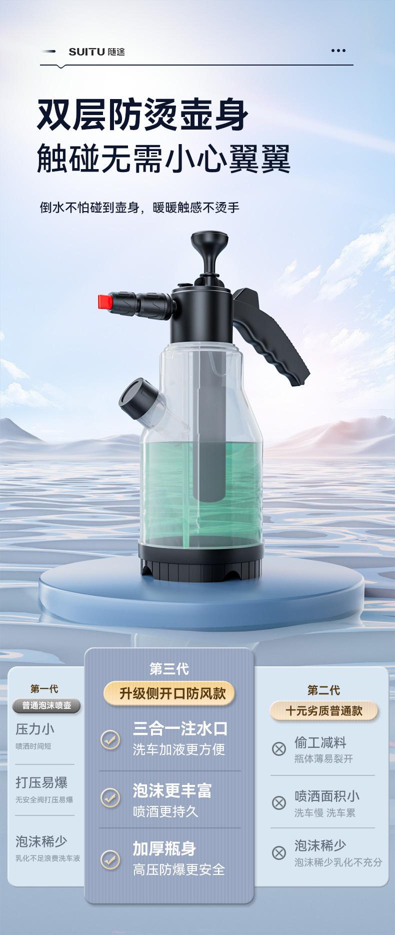 Nota: Hay líneas de escala en el cuerpo de la olla de espuma. No agregue más de 2L de agua. La proporción de líquido para lavado de autos a agua es 1:50, y el efecto de burbujas será mejor.