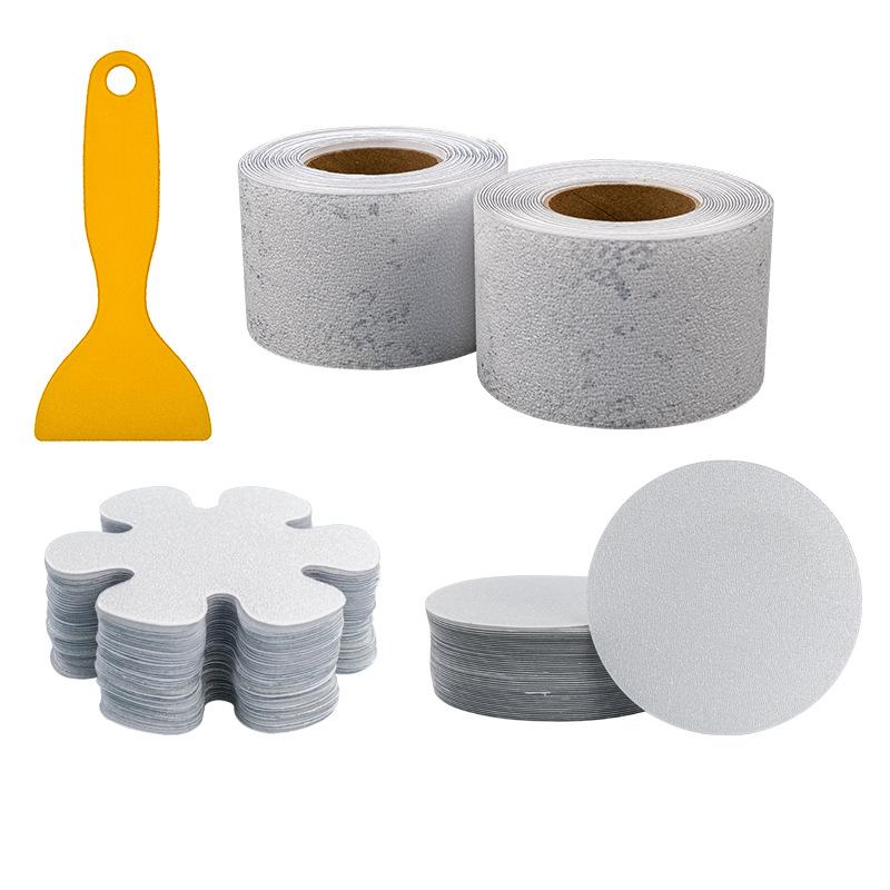 2. Corte al tamaño, retire el papel de soporte (papel de liberación) y use un secador de pelo para precalentar ligeramente la cinta antideslizante y la superficie adhesiva antes de la instalación para aumentar el efecto adhesivo.