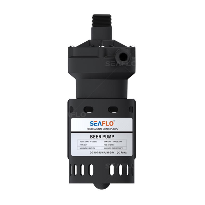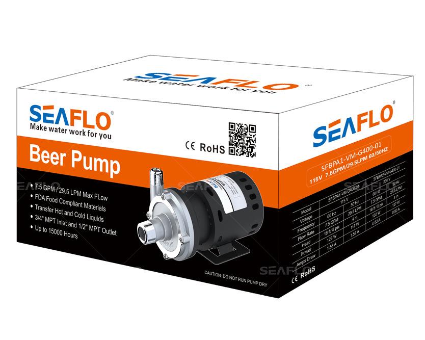 La bomba de cerveza SEAFLO está hecha de material de contacto con alimentos, muy segura y confiable. Buena disipación de calor, resistencia a altas temperaturas, material ignífugo. Puede bombear agua fría y caliente. La vida útil es de 15000 horas. Alta eficiencia, el caudal máximo puede alcanzar 29.5 LPM / 7.5 GPM. La altura puede alcanzar 4M / 18 pies. No puede funcionar en seco.