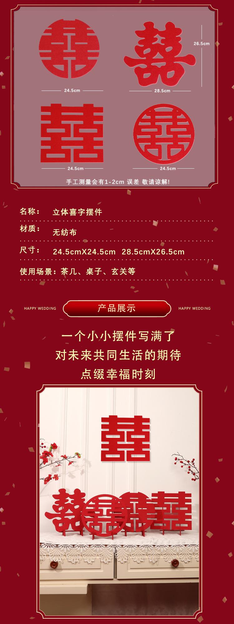[Nome]: 4 tecidos não tecidos com o caractere chinês "喜" (felicidade) como ornamentos para escolher