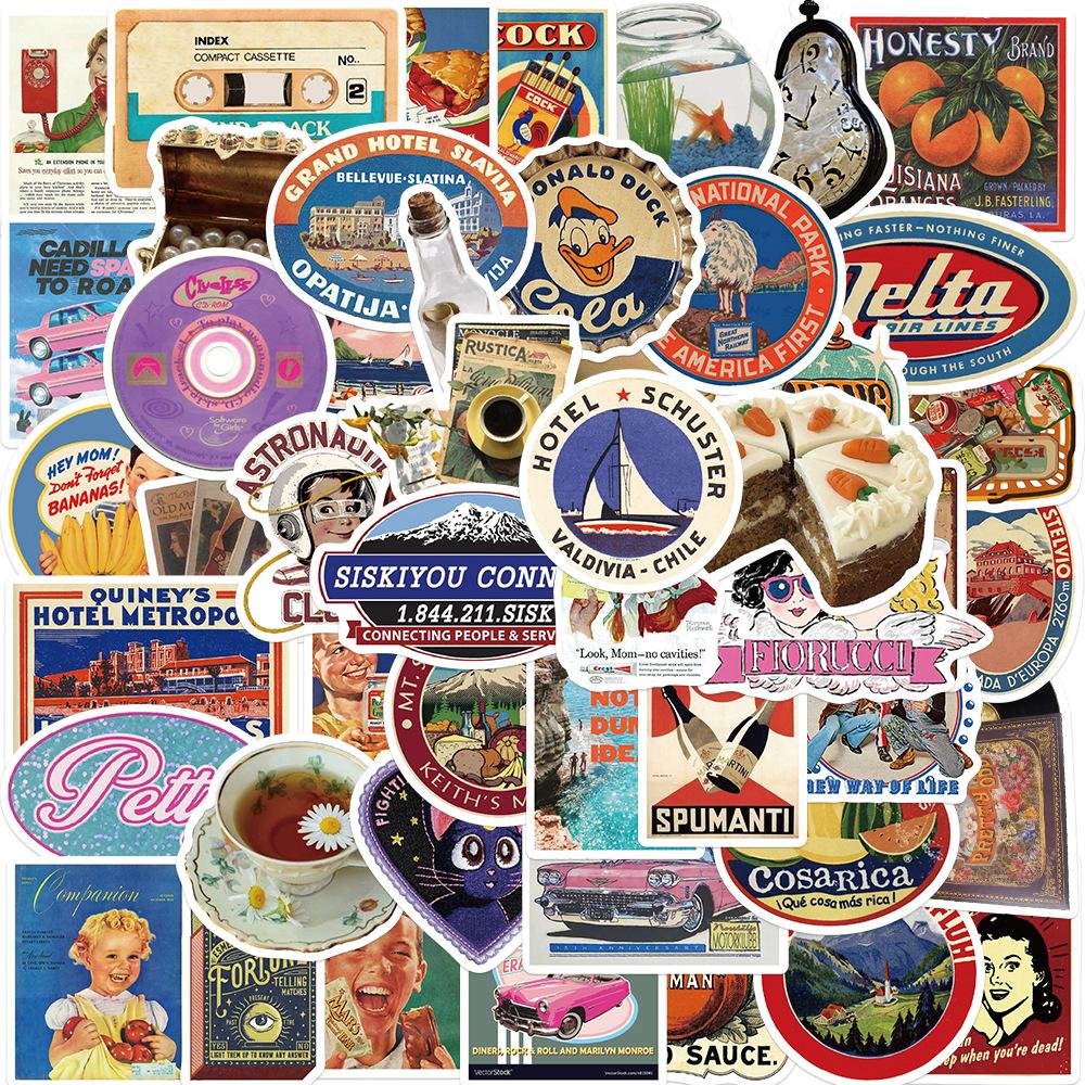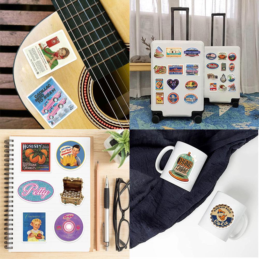 50 cartoon europeu e americano retro graffiti adesivos personalizado guitarra decorativa notebook bagagem DIY à prova d'água atacado