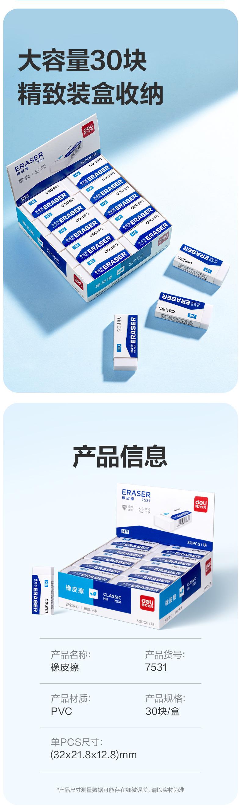 Borrador Deli 7531 para estudiantes, papelería, borrador para niños, examen, arte, pintura, borrador limpio 4B