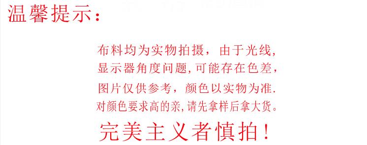 O tecido não foi cortado e processado. Se houver algum problema de qualidade, entre em contato conosco a tempo e trataremos disso para você o mais rápido possível. Como o tecido é um produto especial, o corte afetará as vendas secundárias. Uma vez vendidas as mercadorias, elas só poderão ser devolvidas ou trocadas, a menos que haja problemas de qualidade. Você não pode devolvê-los ou trocá-los com base em preferências pessoais.