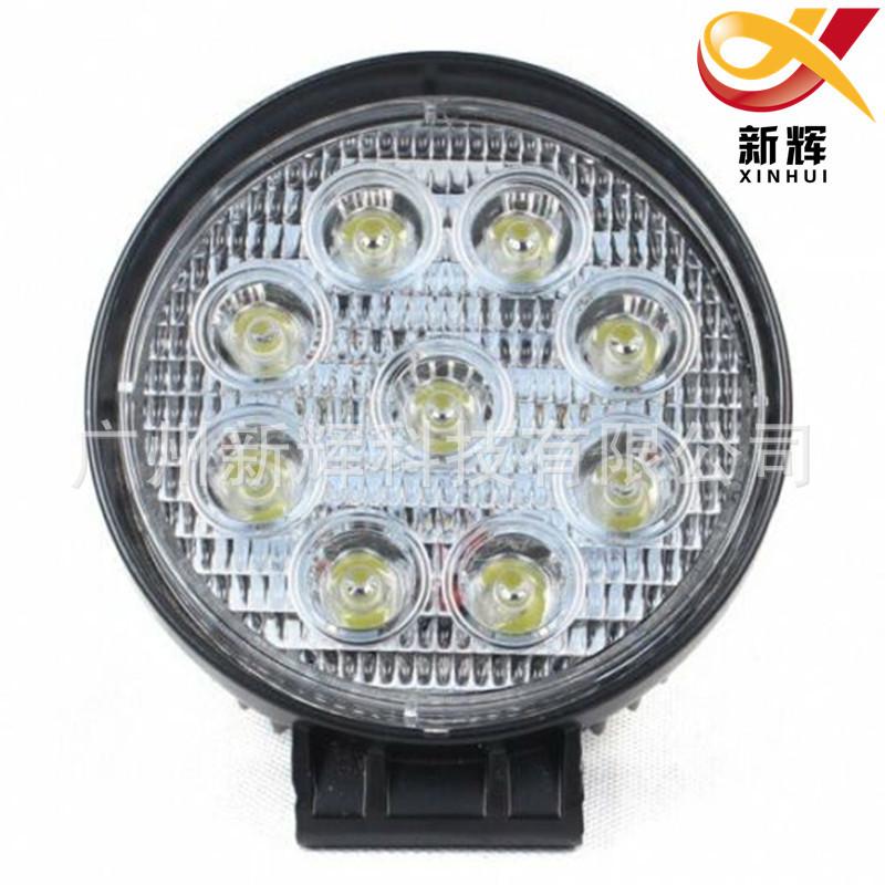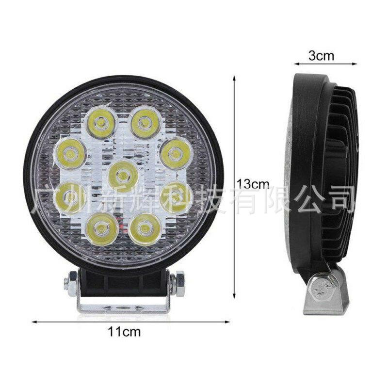Carro LED luz de trabalho redonda 9 luzes 27w luz fina para motocicleta luz off-road luz de manutenção modificada holofote
