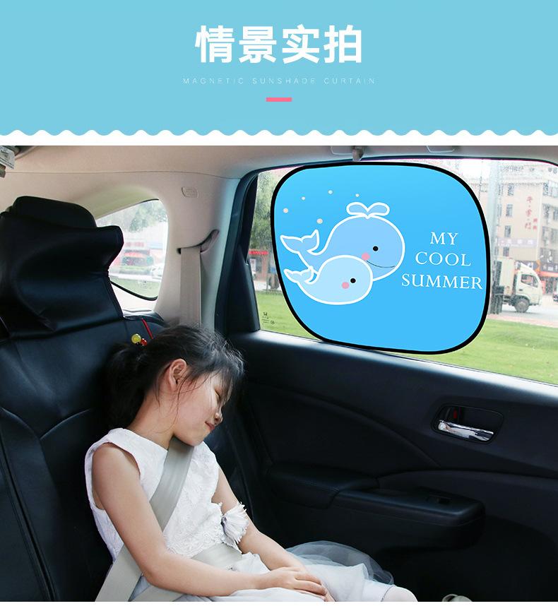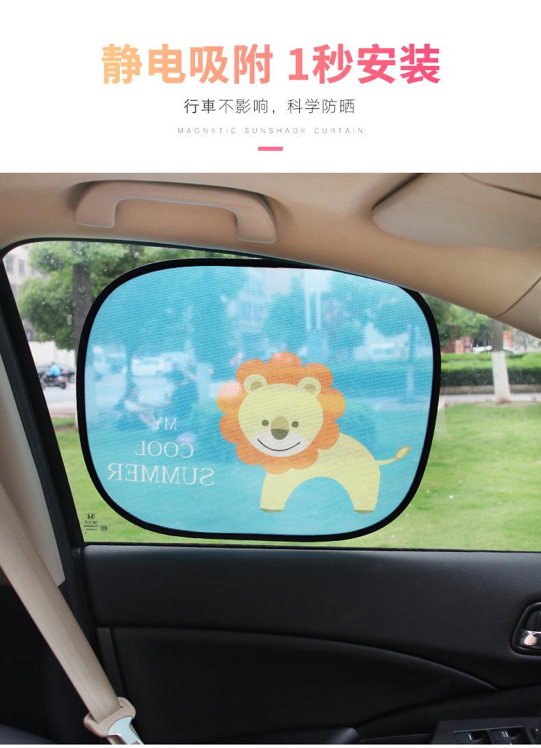 La fuerte luz solar que entra directamente por las ventanillas laterales no solo es deslumbrante, afectando la conducción e insoportable, sino que la alta temperatura también dañará el interior de cuero del coche.Bloqueador solar de adsorción estática de dibujos animadosParasol, reduce la exposición a altas temperaturas, adsorción directa, ¡fácil de usar!