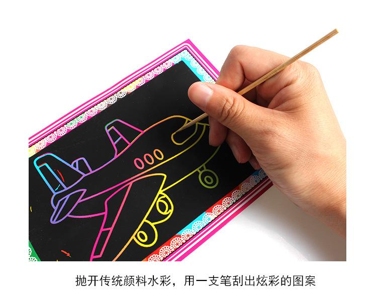 El papel para rascar es un material de pintura novedoso y único. Combina muy bien una variedad de características de pintura, haciendo que el proceso originalmente complejo sea simple y seguro. El papel para rascar subvierte la tradición pasada de usar bolígrafos para dibujar en papel. Es muy bueno. Está diseñado basándose en las características del grabado para crear el efecto de rascar sobre papel con un bolígrafo de bambú. La seguridad mejora enormemente. Es adecuado para estudiantes de todas las edades. Los profesores pueden usarlo con confianza y audacia, y los estudiantes también pueden ser infinitamente similares. Es muy bueno. El ambiente que promueve la enseñanza mejora enormemente los resultados de la enseñanza.